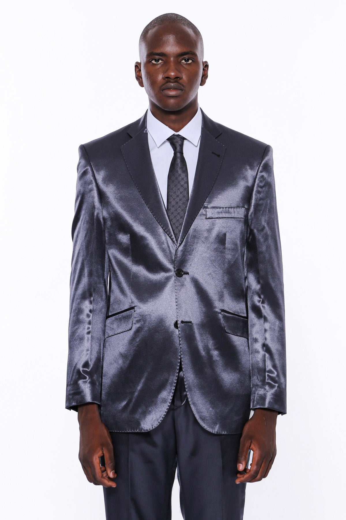 ✔️ It combines a modern cut and glossy fabric with a classic suit structure.