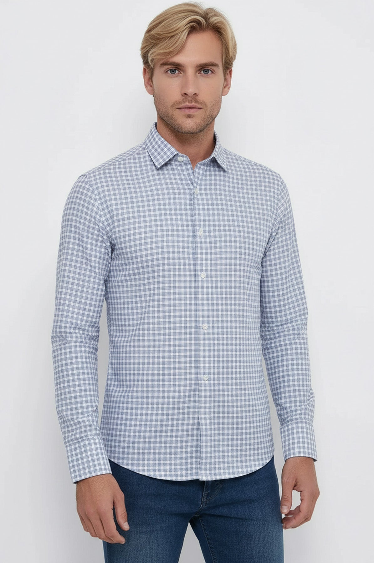 Chemise Bleu Marine à Motifs à Carreaux Coupe Slim - Wessi