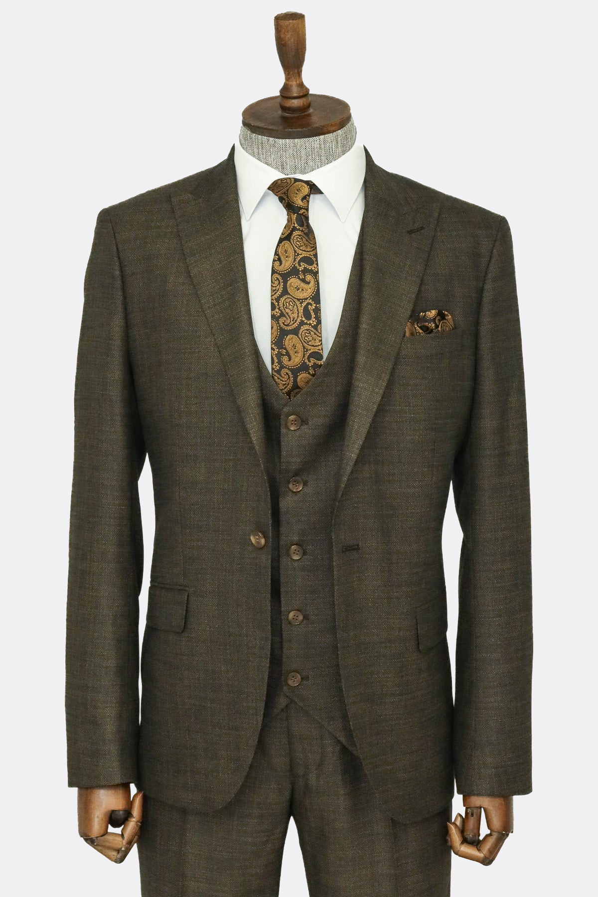 3 -Piece Single Button Peak Lapel Khaki Men Suit - Wessi