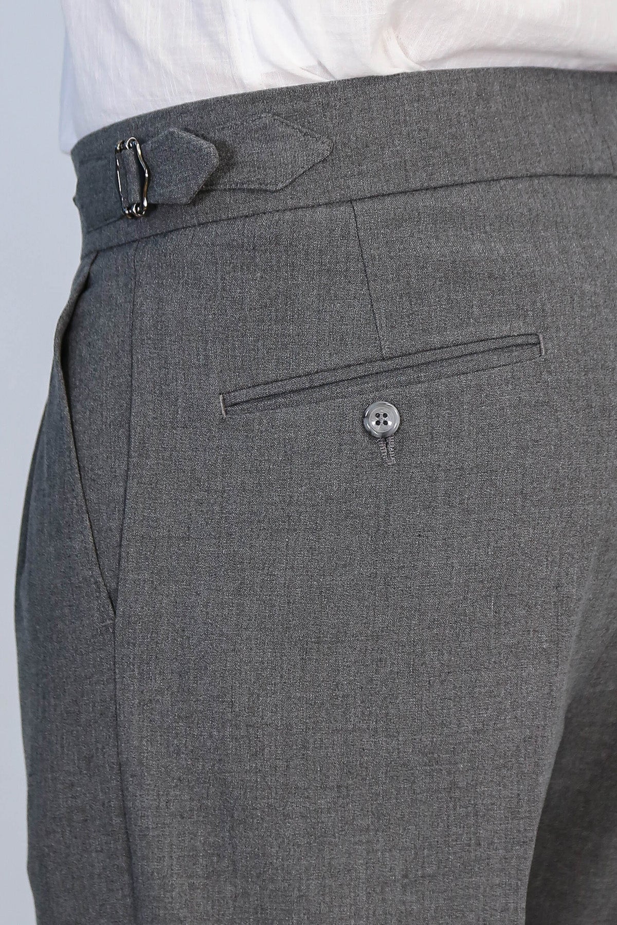 Anthracite Double-Pleated High-Waisted Slim Fit Trousers with Side Buckles – Wessi