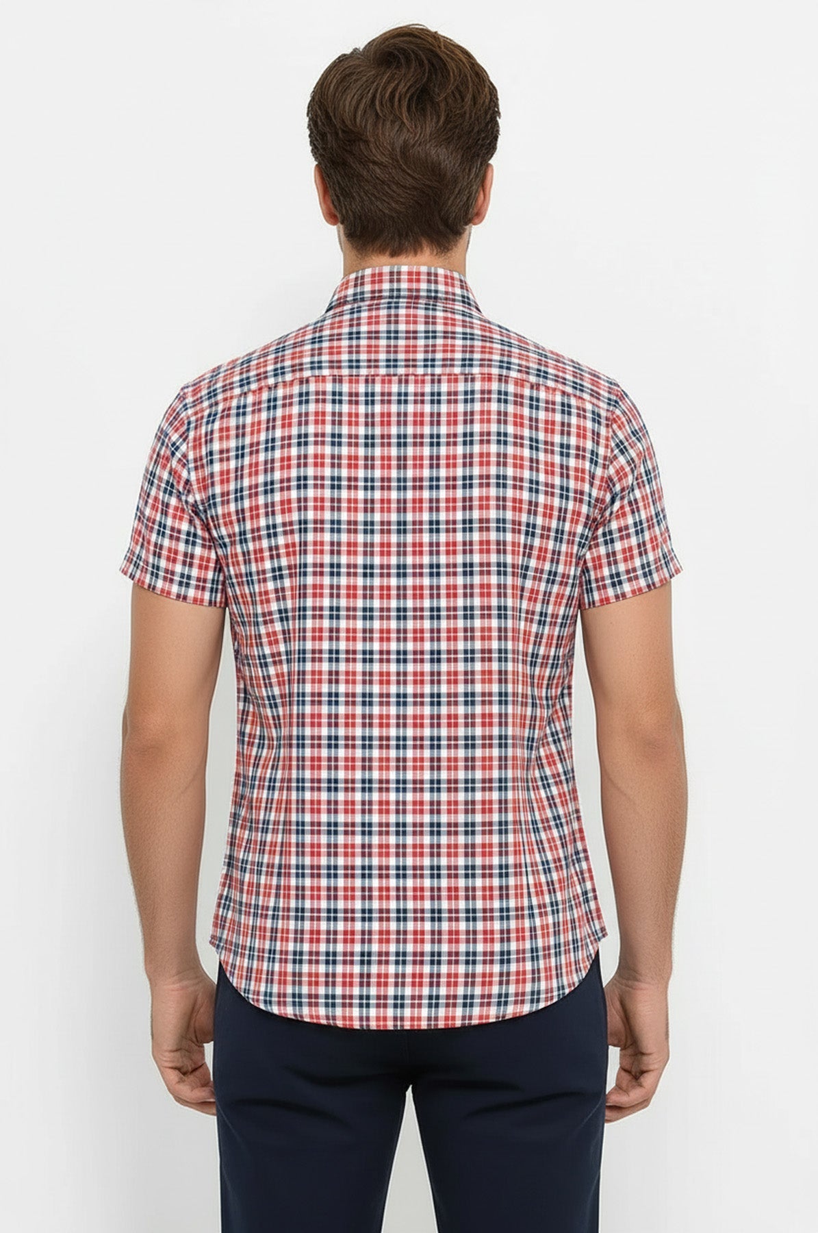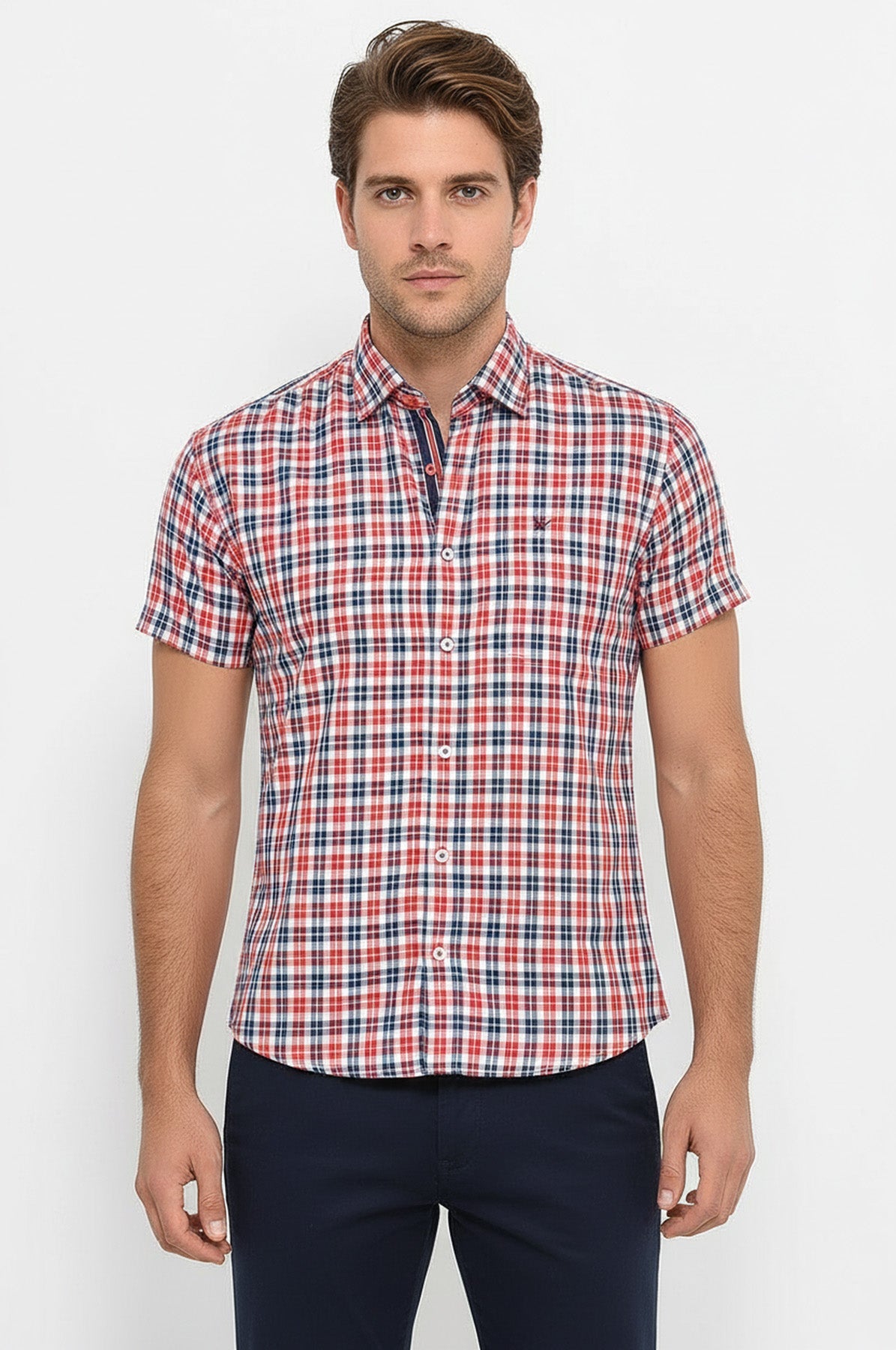A must-have piece in your wardrobe to enhance your daily elegance: Plaid Patterned Short Sleeve Navy Blue Men's Shirt. This shirt complements your style in everyday life by offering a comfortable and stylish look. The navy blue color offers a simple and attractive style, while the plaid pattern makes the shirt special. The short sleeve design allows you to feel comfortable on hot days. Pair this plaid shirt with light-colored jeans or shorts for a casual look. Adding white or navy blue sneakers on top will match your style. Adding a light cardigan or denim jacket will help you be prepared for cooler weather conditions. With this shirt, you will look both stylish and comfortable in everyday life. Order this shirt now and showcase your style in everyday life!