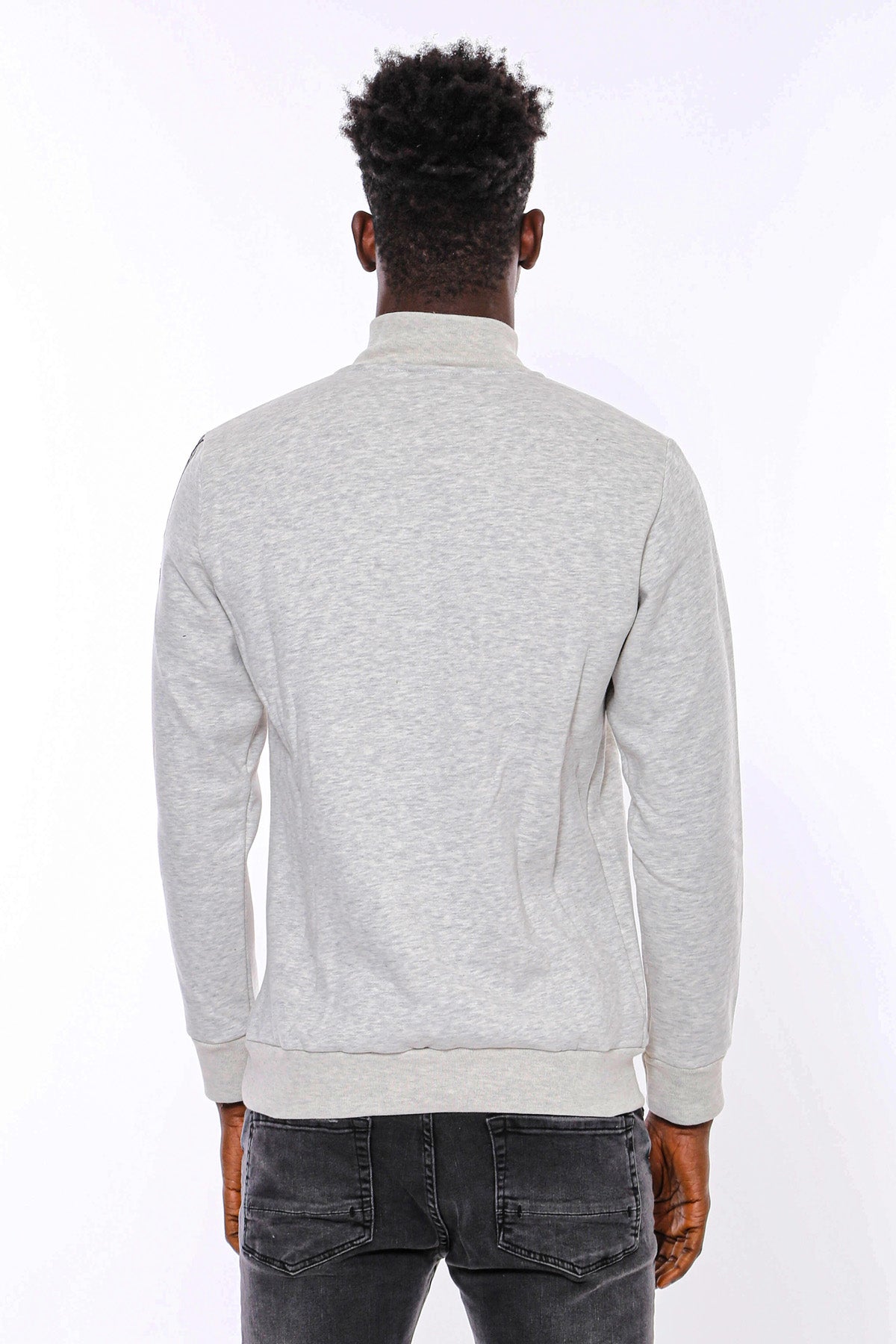 Mandarin Collar Patterned Grey Sweatshirt - Wessi