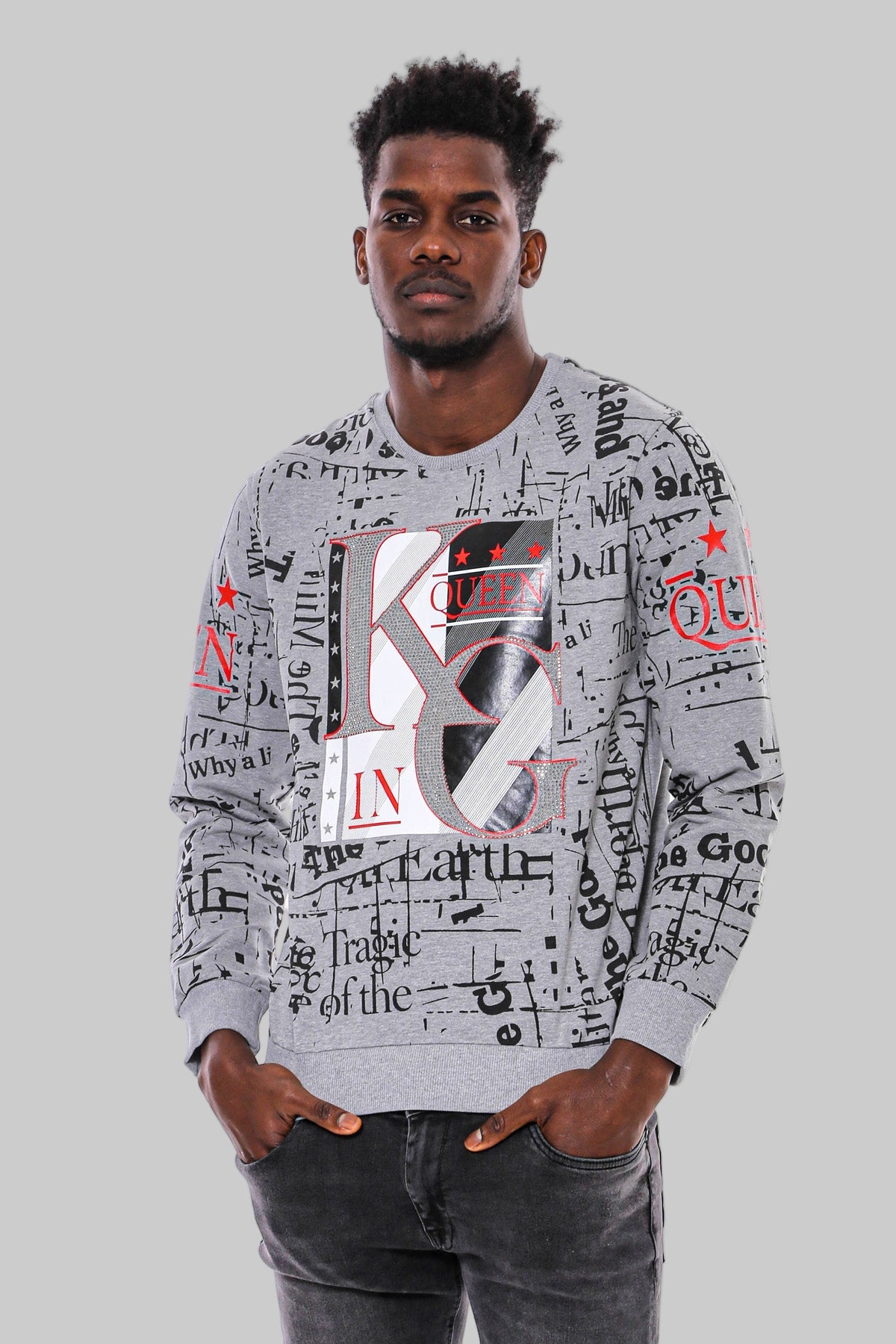 Patterned Slim Fit Grey Sweatshirt - Wessi