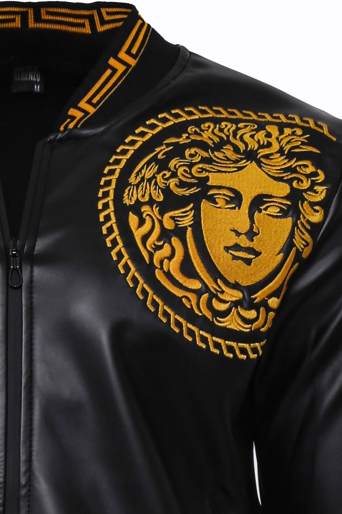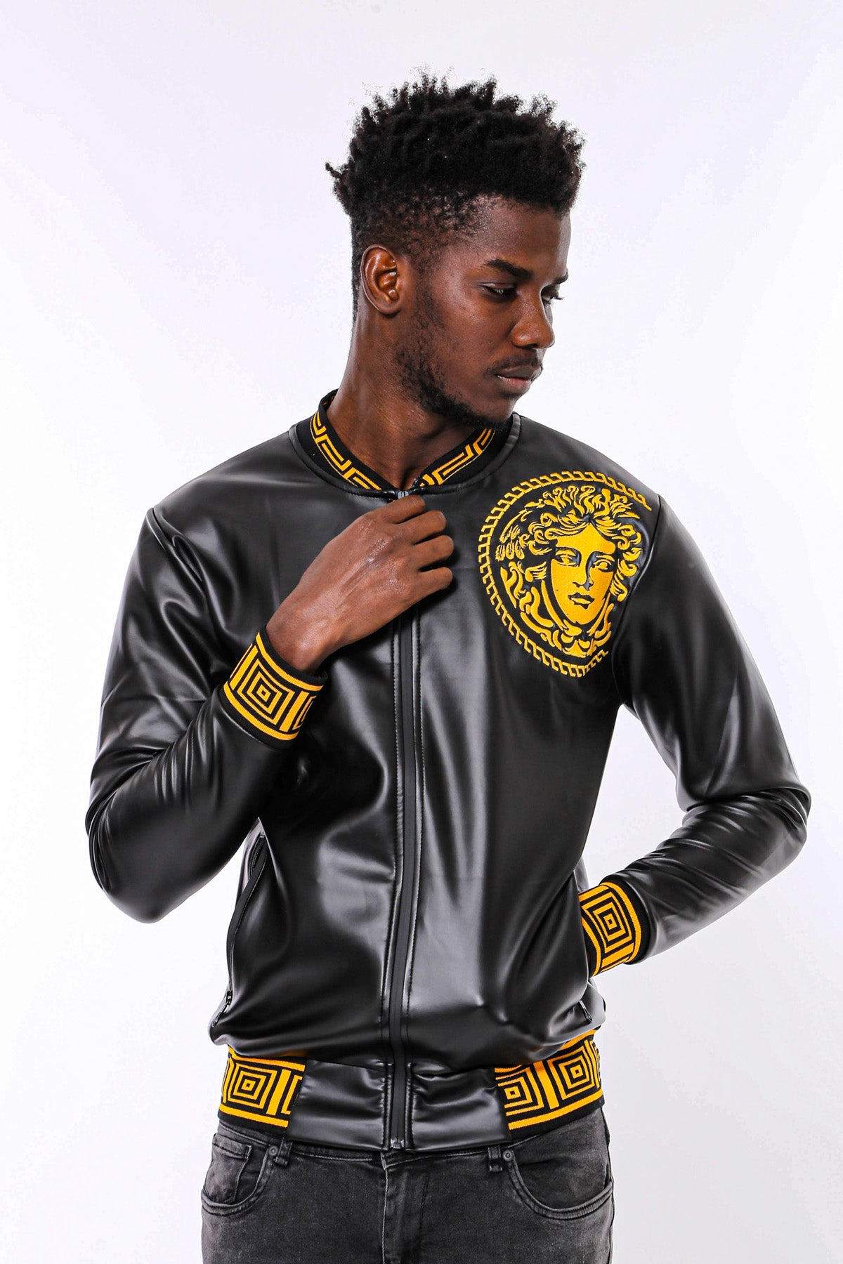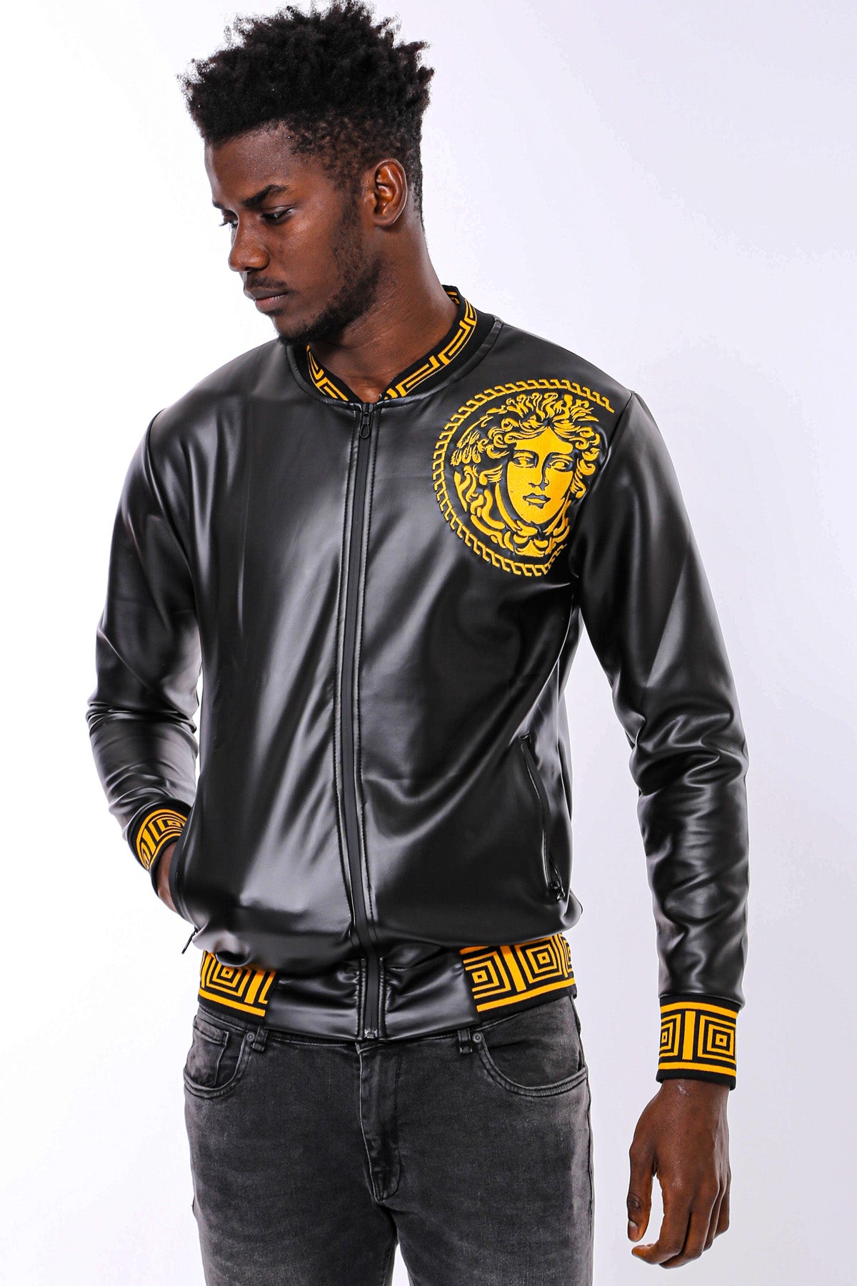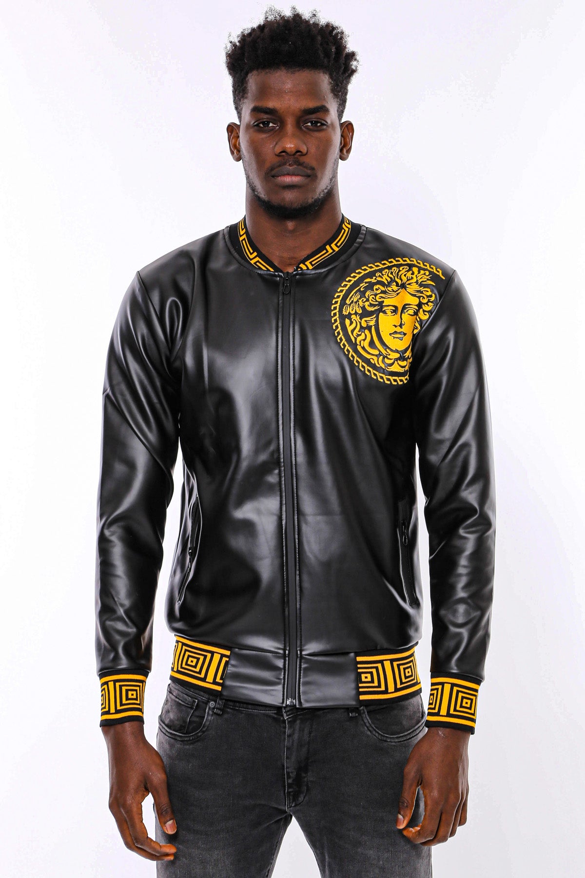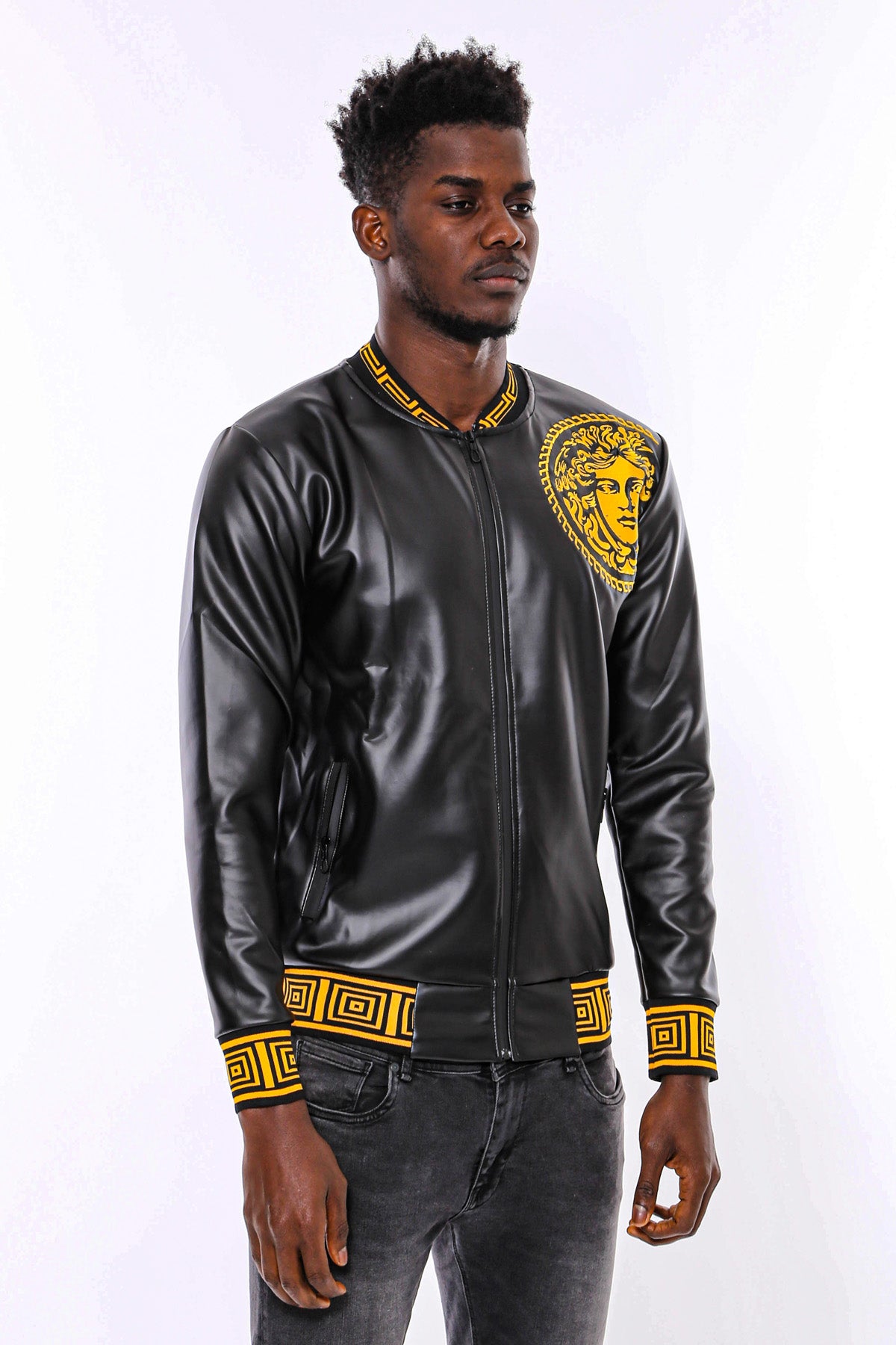 معطف موسمي مطبوع من الجلد باللون الأسود - ويسي