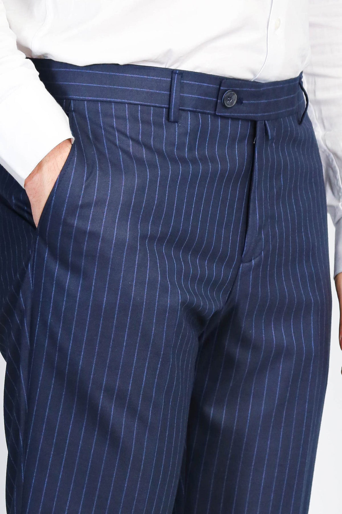 Why Choose Wessi Navy Fine Pinstripe Slim Fit Dress Trousers?