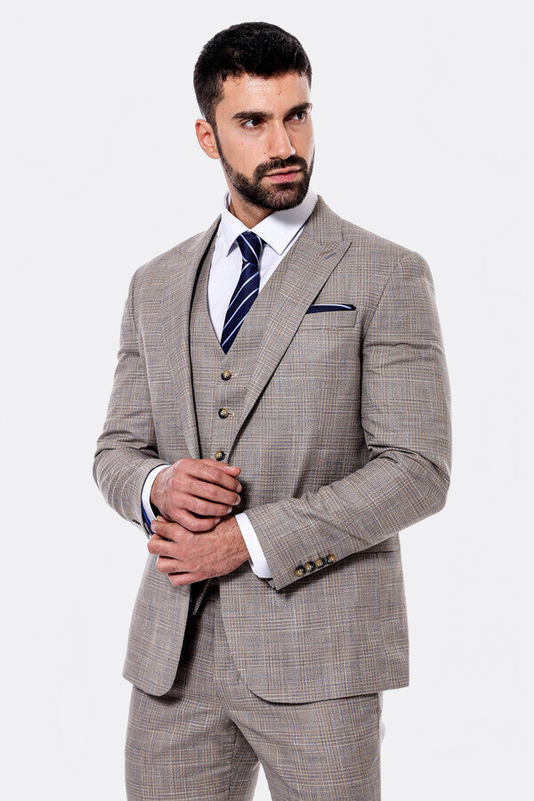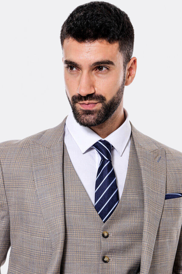 بدلة رجالية منقوشة باللون البيج بقصة ضيقة - ويسي