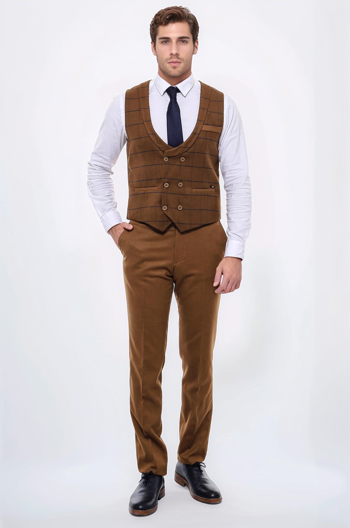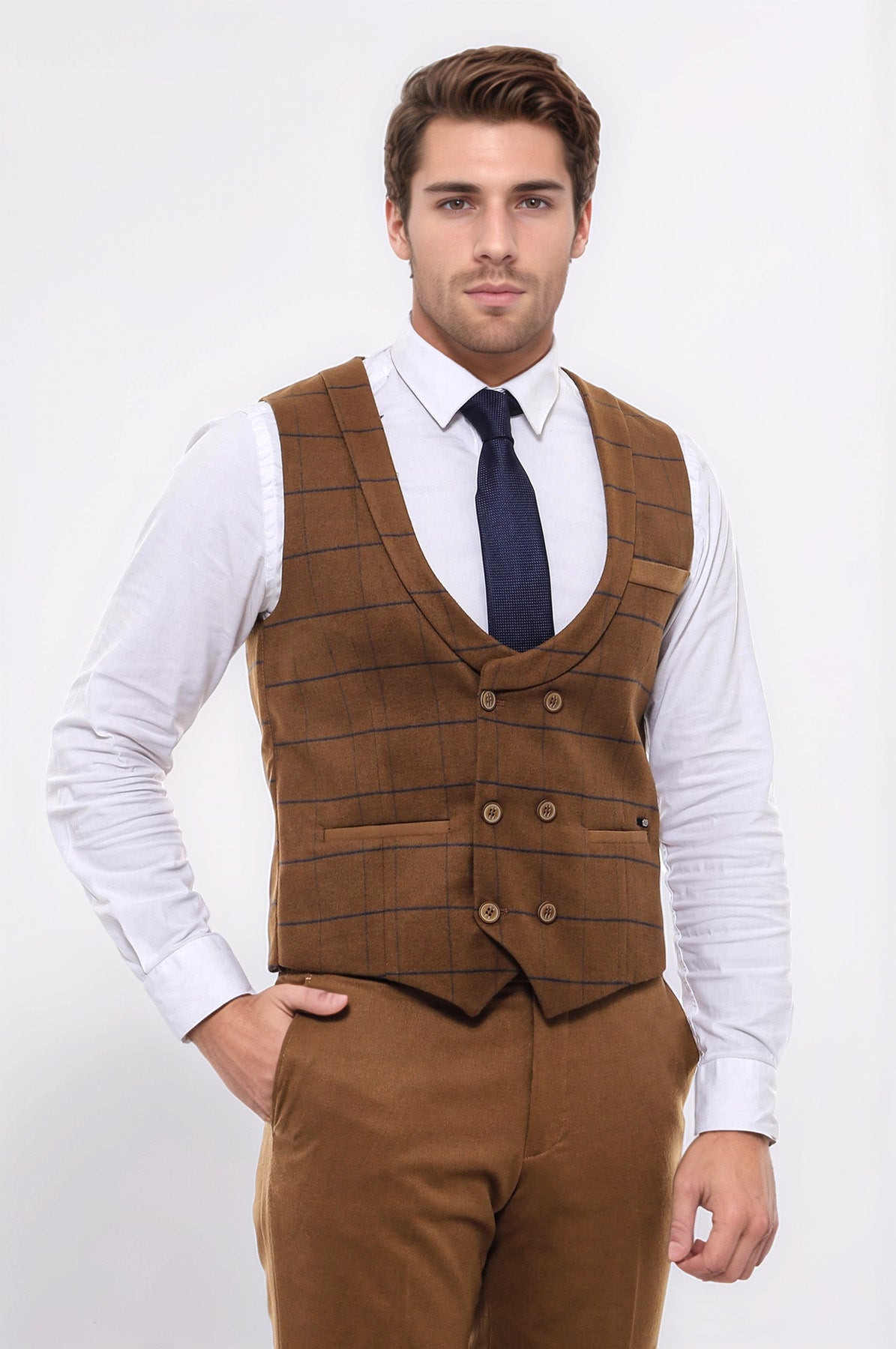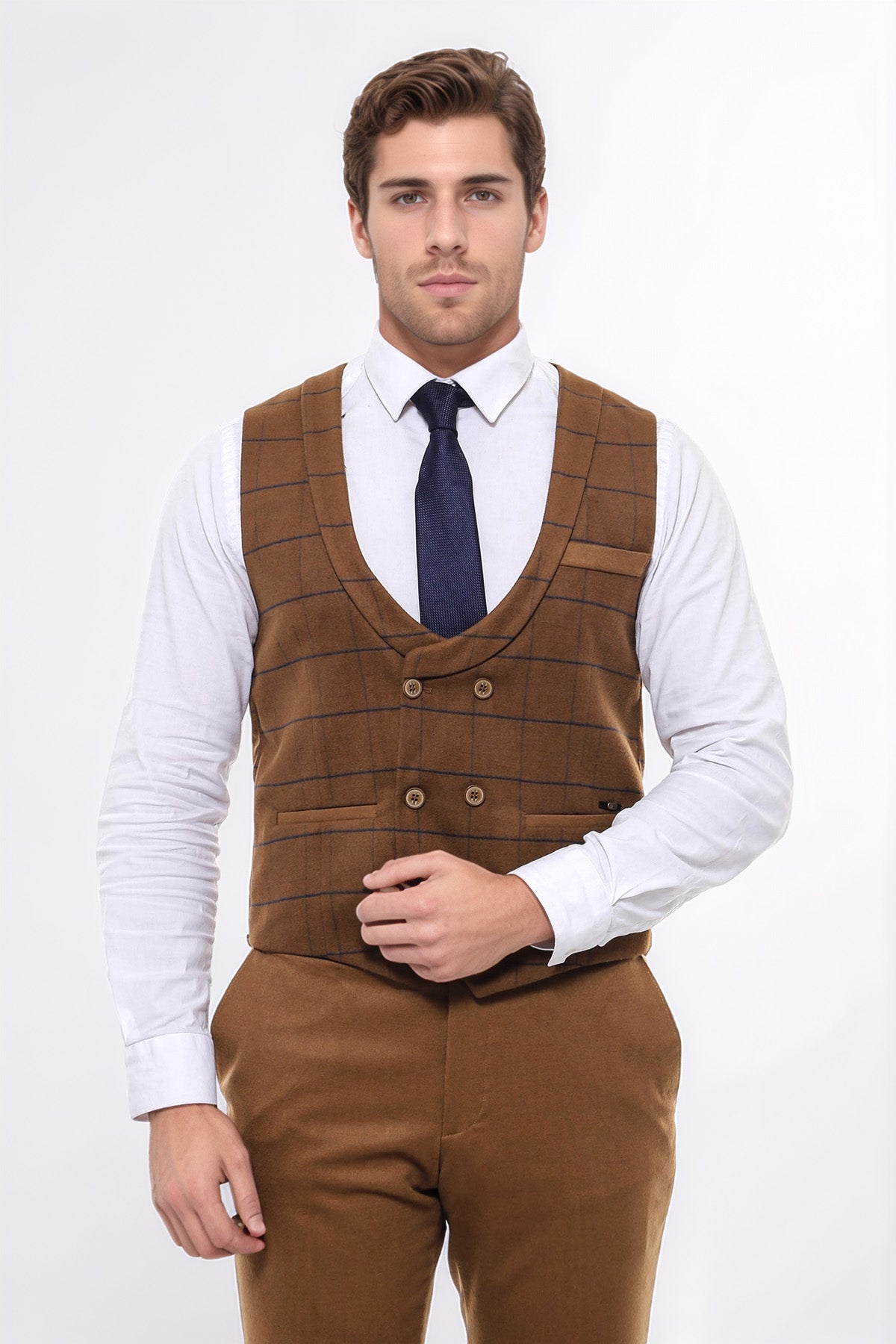 يمكن دمج السترات بسهولة مع أنماط مختلفة. ارتديها مع قمصان أو سترات لمظهر رسمي، أو ارتديها مع تيشيرتات لمظهر كاجوال أكثر. لدينا اقتراح رائع لك والذي لا غنى عنه في خزانة ملابسك للحصول على مظهر أنيق ومريح في برودة الخريف البسيطة: سترة رجالية بقصة ضيقة ومزدوجة الصدر وأسمرة مع نمط منقوش. ستسلط هذه السترة الضوء على أسلوبك بينما تبقيك دافئًا وفقًا لموضة الخريف. ال يوفر اللون الأسمر الدفء الذي يتناسب مع درجات الخريف الطبيعية، بينما يجعل النمط المنقوش السترة مميزة. التصميم مزدوج الصدر يجعل السترة مختلفة وجذابة. يمكنك دمج هذه السترة السمراء مع قميص وبنطلون أبيض بقصة ضيقة باللون الذي يتناسب مع اللون البني لتحصلي على مظهر مناسب لأزياء الخريف. إضافة سوف تساعدك الأحذية أو الأحذية بدون كعب المصنوعة من الجلد البني وحزام مطابق أسفلها على استكمال أسلوبك. في أيام الخريف الباردة، يمكنك استكمال السترة بسترة صوفية رفيعة لإبقائك دافئًا والتأكيد على أسلوبك. تعكس هذه السترة اتجاهات الجمال والموضة في فصل الخريف. اطلب هذه السترة الآن وأظهر أناقتك في أزياء الخريف!