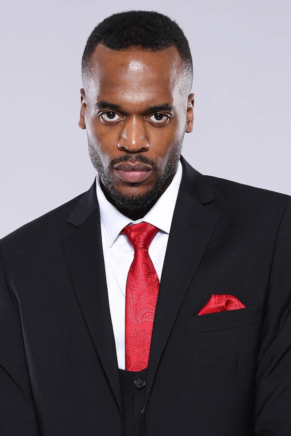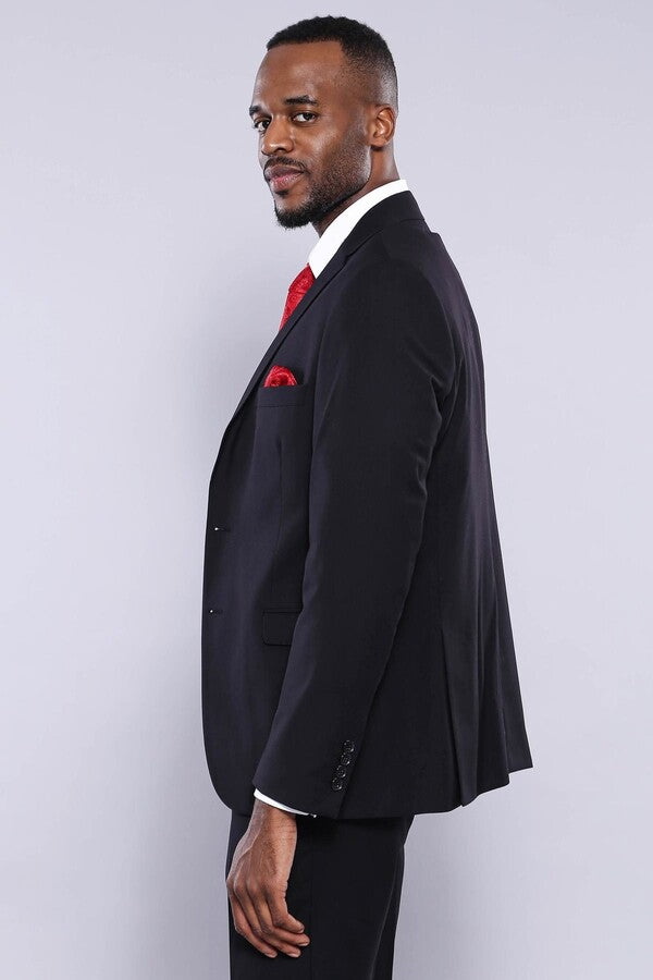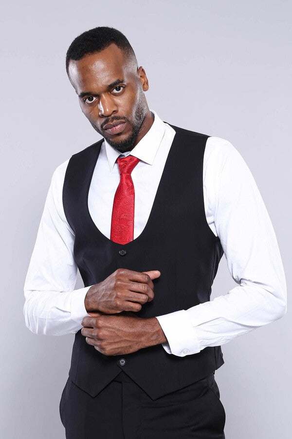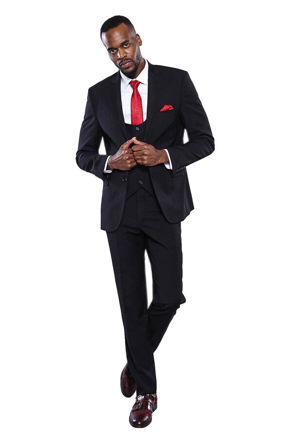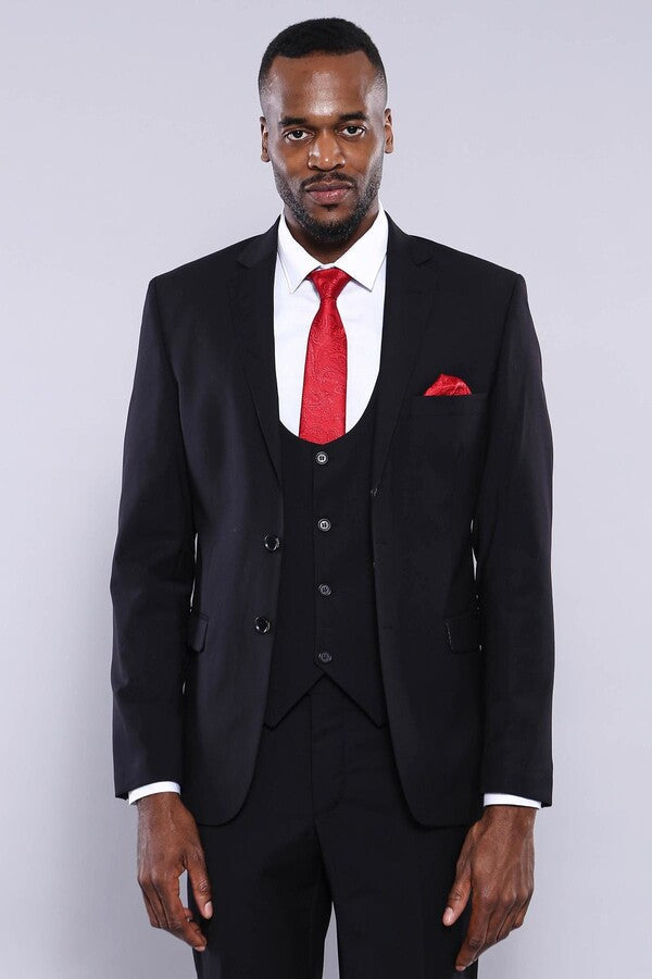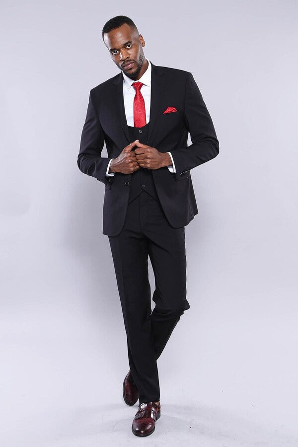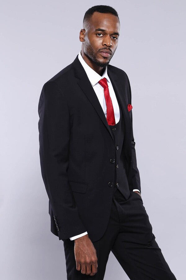 بدلة رجالية مكونة من ثلاث قطع باللون الأسود - ويسي