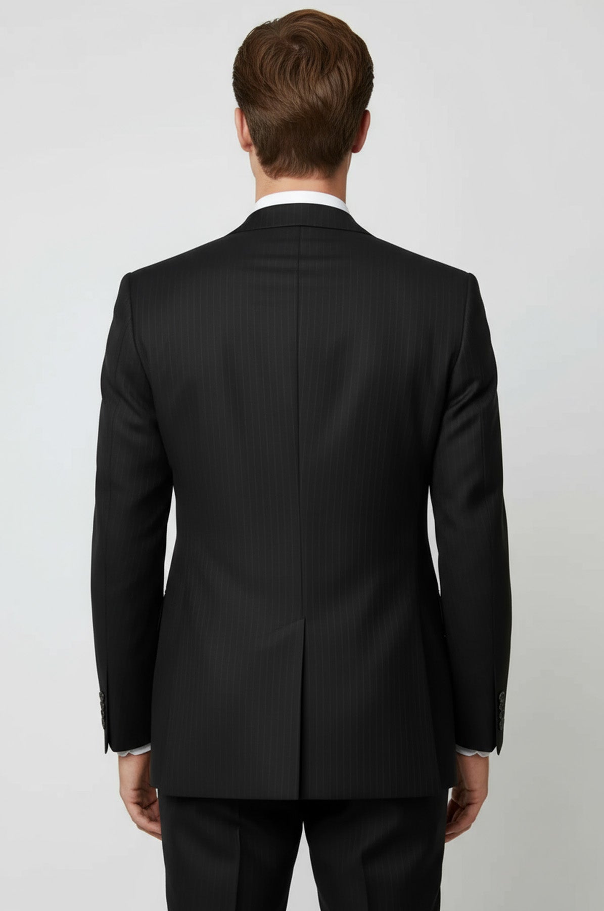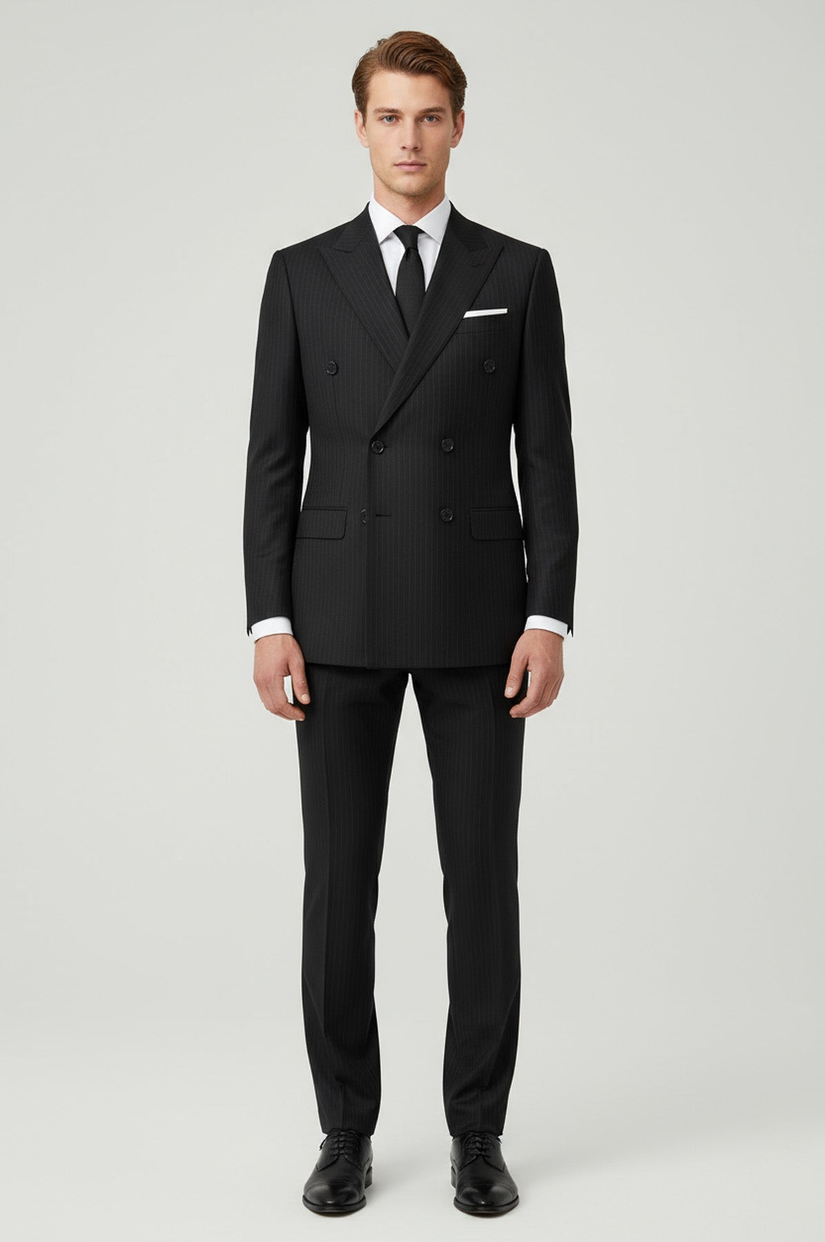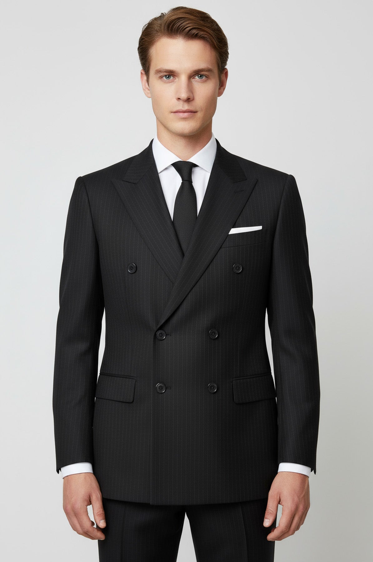 بدلة مخططة ذات ياقة واسعة للرجال باللون الأسود مزدوجة الصدر - ويسي