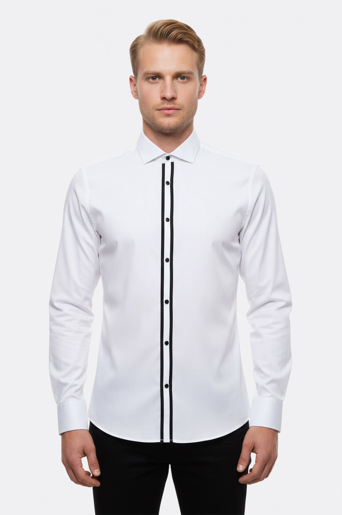 قميص رسمي أبيض بياقة قائمة - ويسي