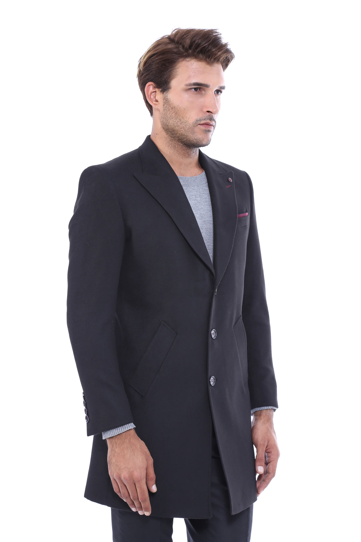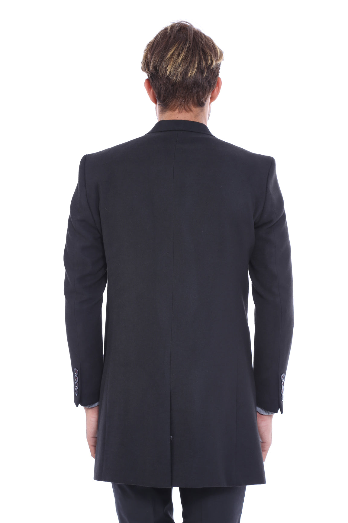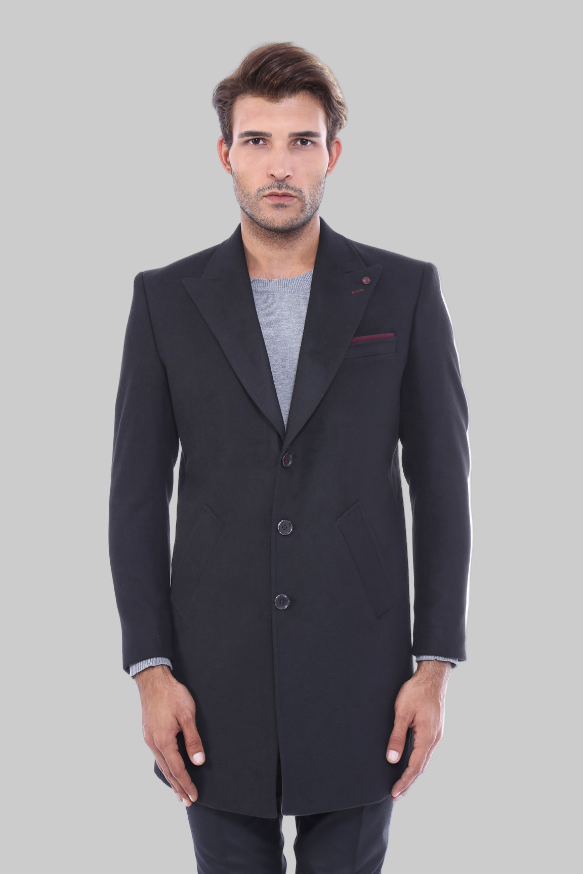 معطف رجالي أسود بياقة مدببة واسعة فوق الركبة - ويسي