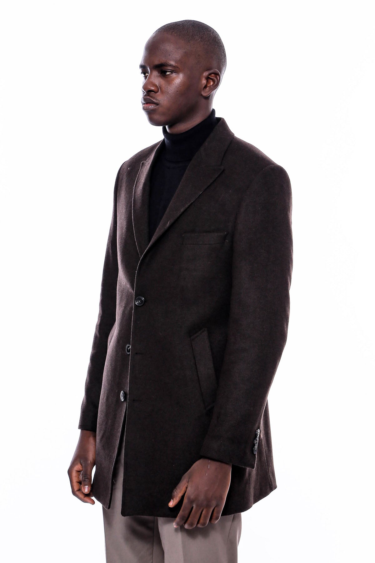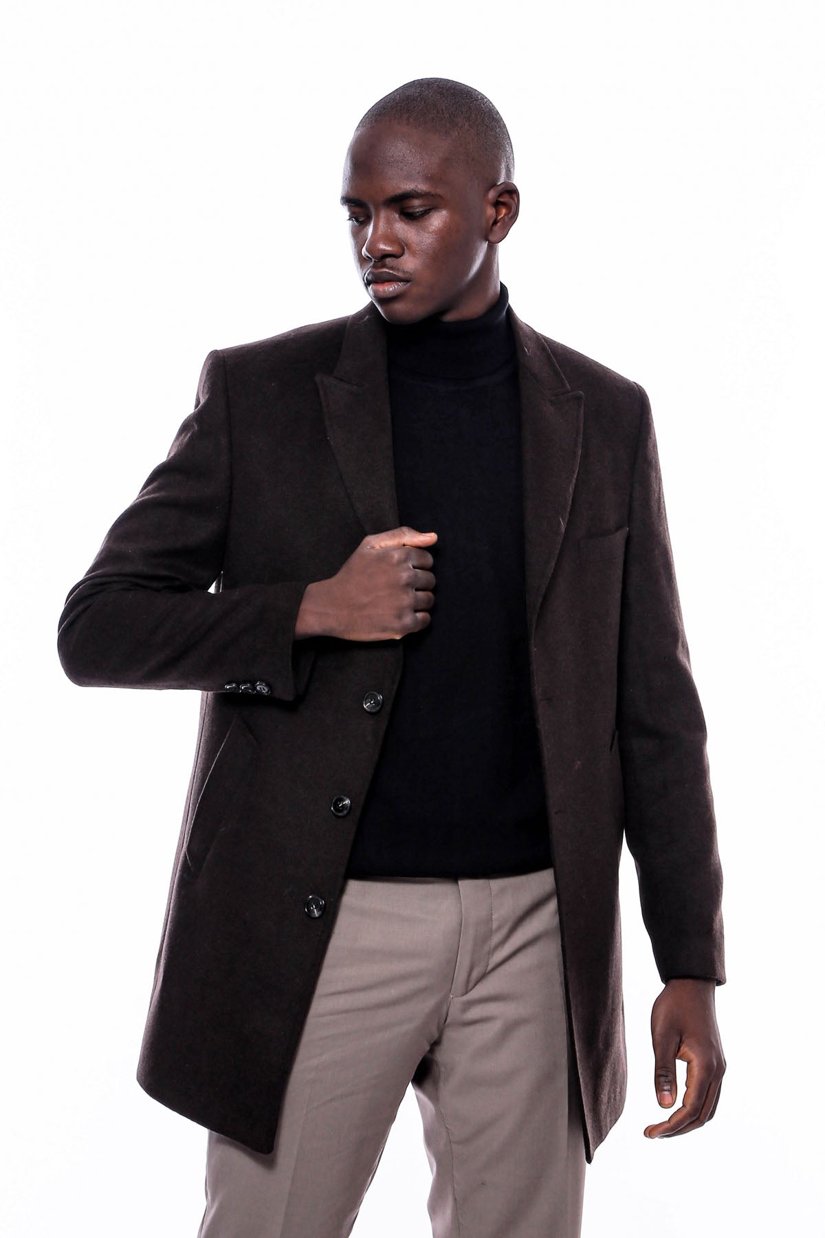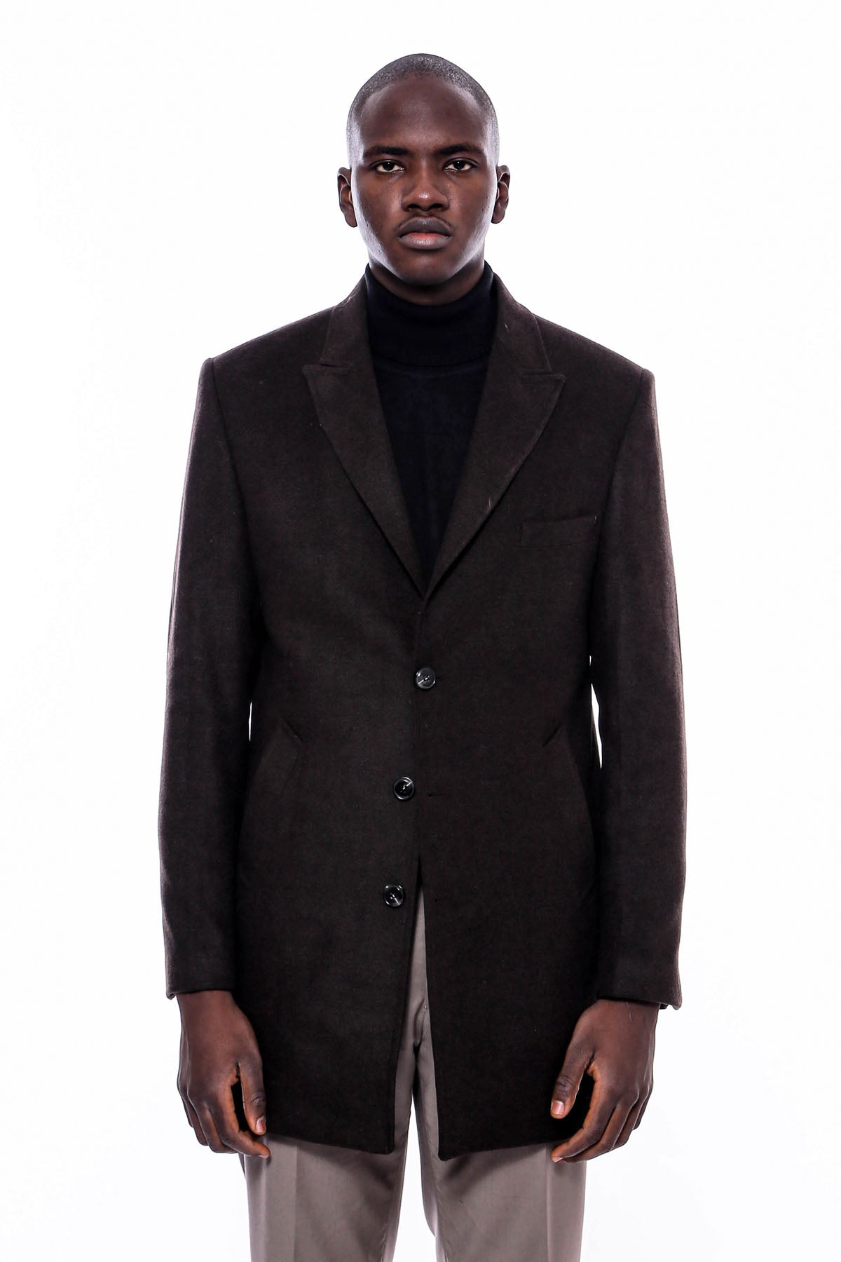 معطف رجالي بني بياقة مدببة واسعة فوق الركبة - ويسي
