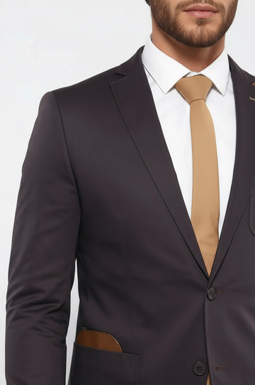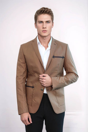 2 Button Mono Lapel Plain Cotton Brown Jacket-Wessi