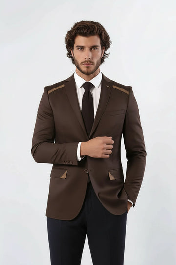 Patterned Slim-Fit Brown Men Blazer - Wessi