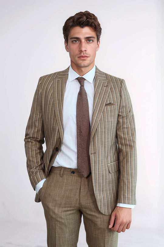 The mens tan slim fit suit represents contemporary formal wear trends where color meets modern silhouettes to create pieces that appeal to style-conscious gentlemen who appreciate both distinctive color and contemporary fit.