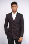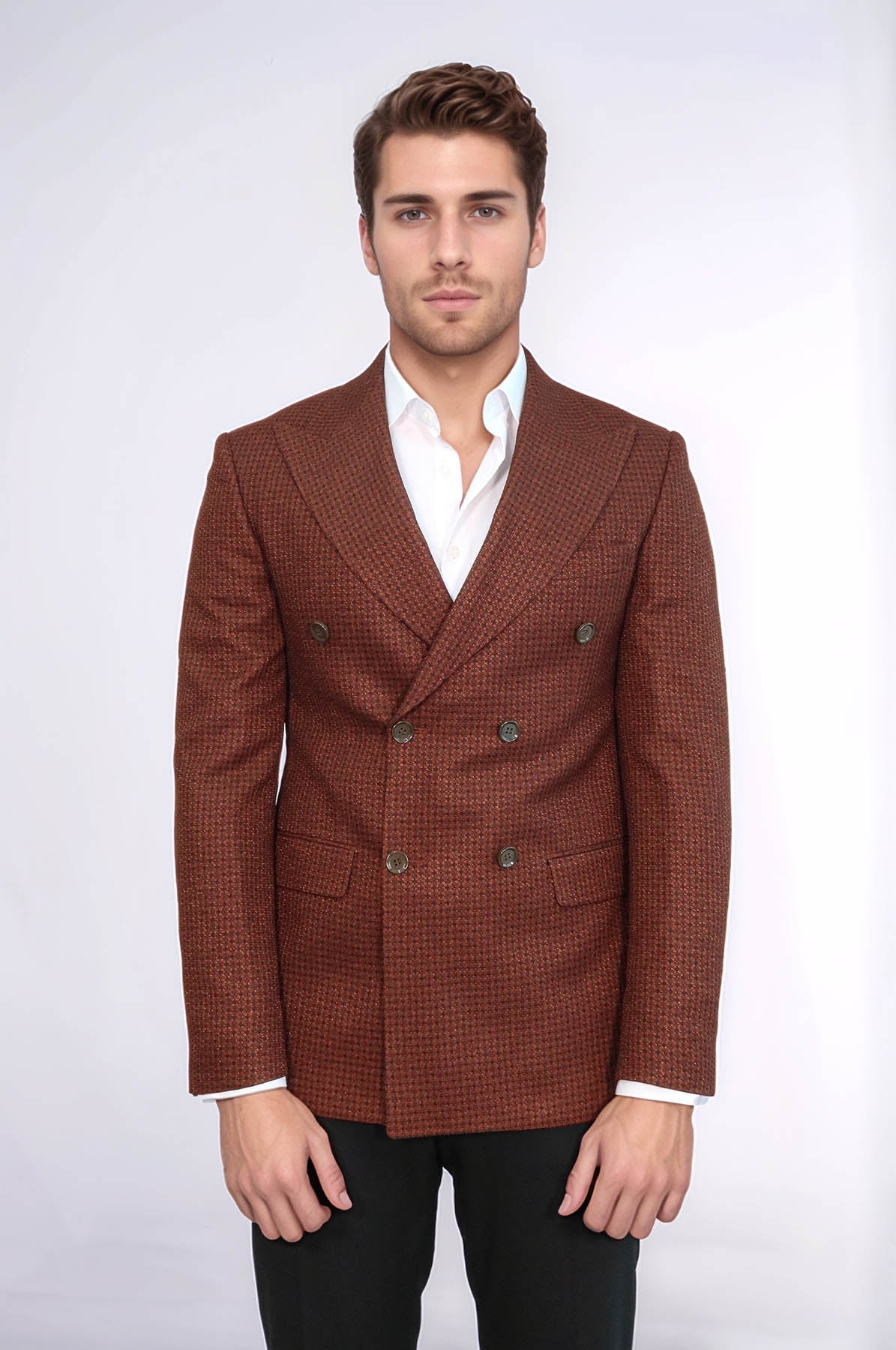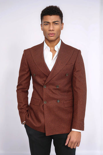 Houndstooth Patterned Brown Men Double Breasted Blazer - Wessi