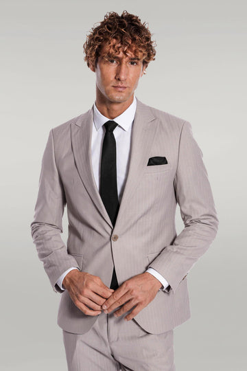 Light grey slim fit suit pieces offer fresh, contemporary appeal with modern proportions that work beautifully with current fashion trends while maintaining sophisticated elegance and professional credibility.