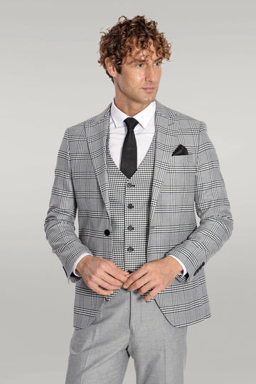White and grey suit coordination provides classic sophistication with maximum versatility that ensures appropriate elegance for various occasions while maintaining crisp, professional appearance and timeless appeal.