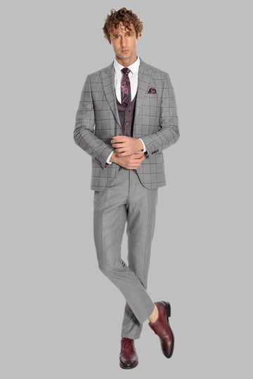 Mens grey check suit selections offer contemporary pattern choices that provide distinctive styling while maintaining sophisticated elegance and professional appropriateness for business and formal occasions.