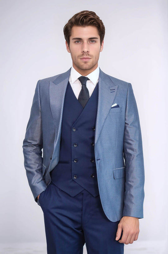 Blue pattern suit selections offer contemporary alternatives that provide distinctive styling while maintaining the versatile coordination potential and professional appropriateness that makes navy blue essential.
