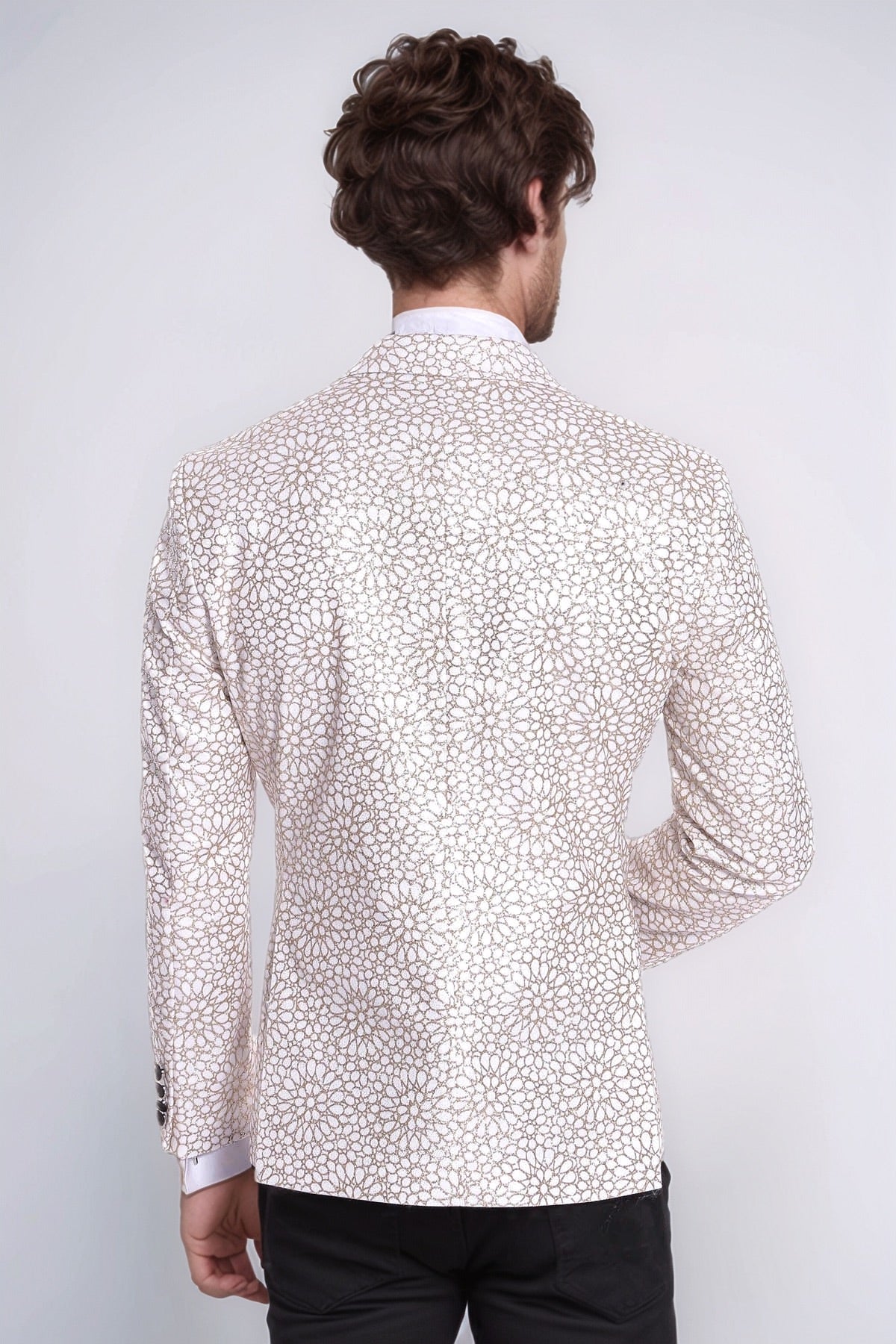 Flower Embroidered Pattern White Men Wedding Tuxedo Jacket - Wessi