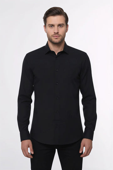 Invierta en el epítome del estilo y la sofisticación con nuestras camisas negras de corte entallado para hombre.