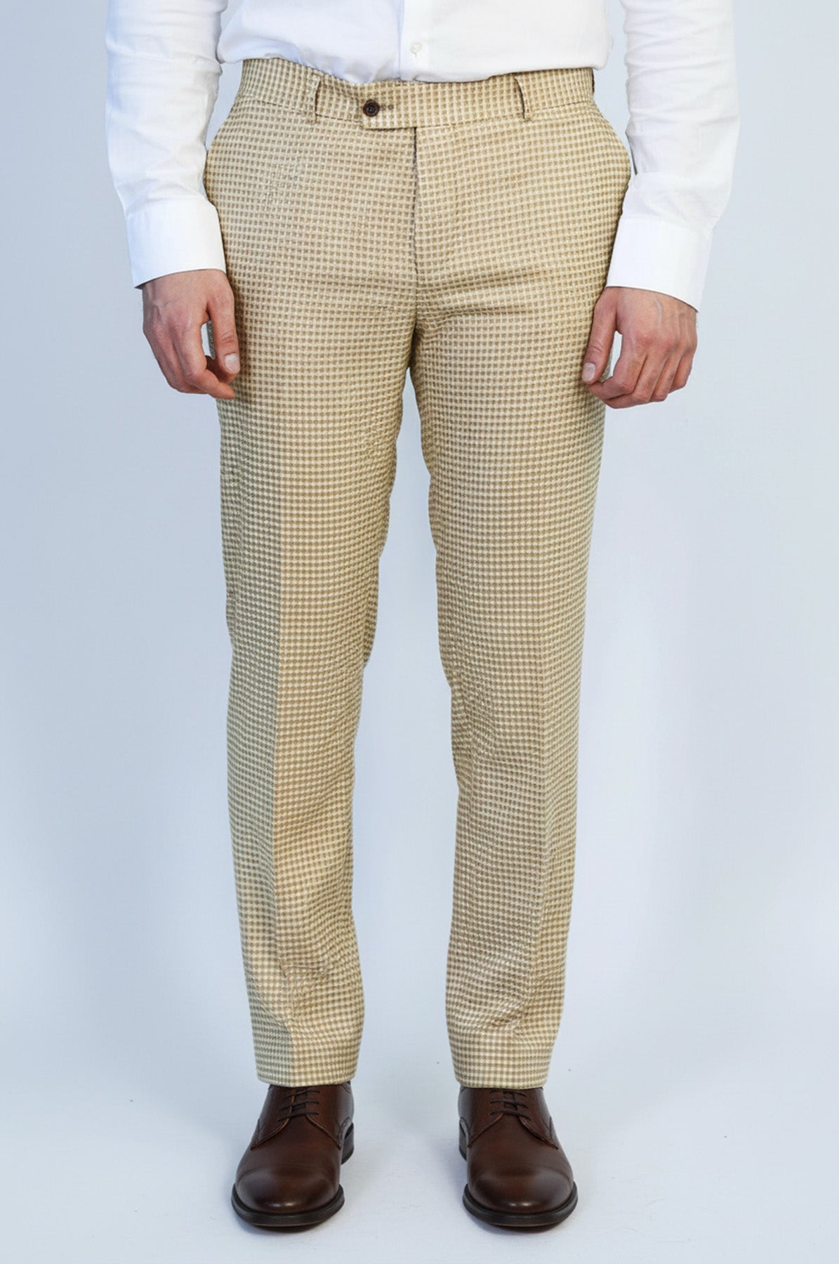 Beige Micro Pattern Slim Fit Dress Pants – Wessi