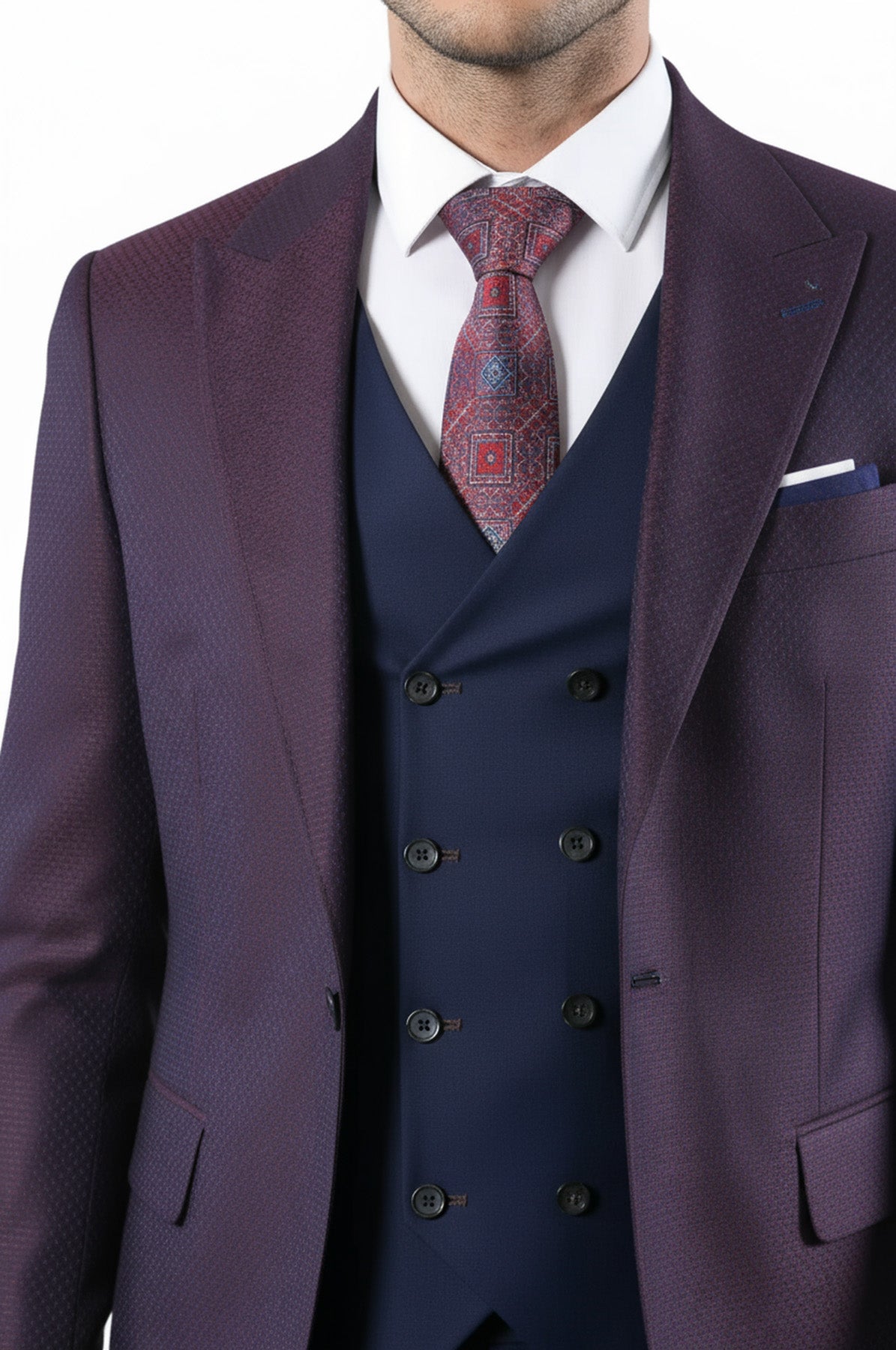 Traje Chaqueta Granate Combinada Azul Marino - Wessi