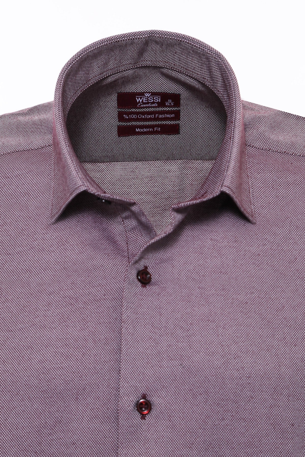 Camisa Slim Fit Manga Larga Estampada Burdeos - Wessi