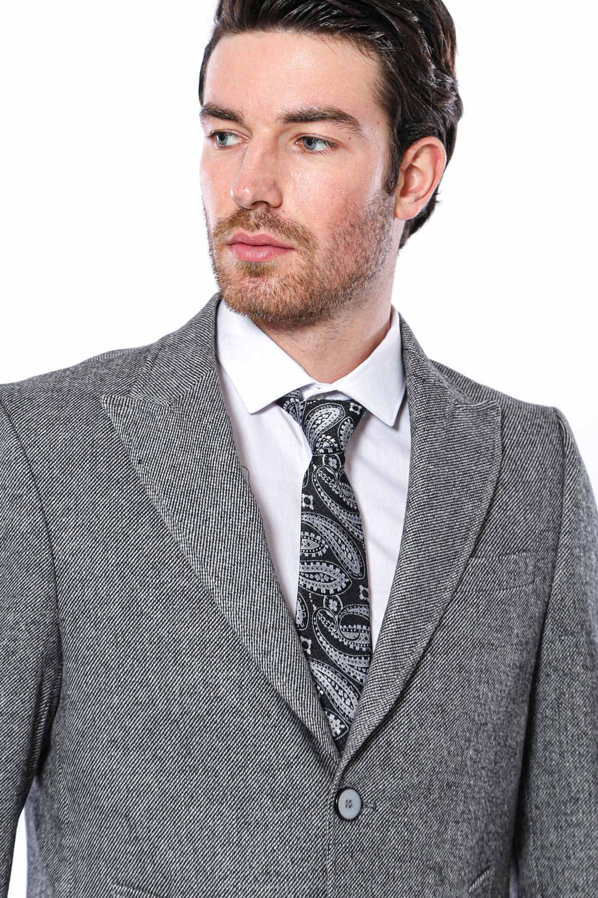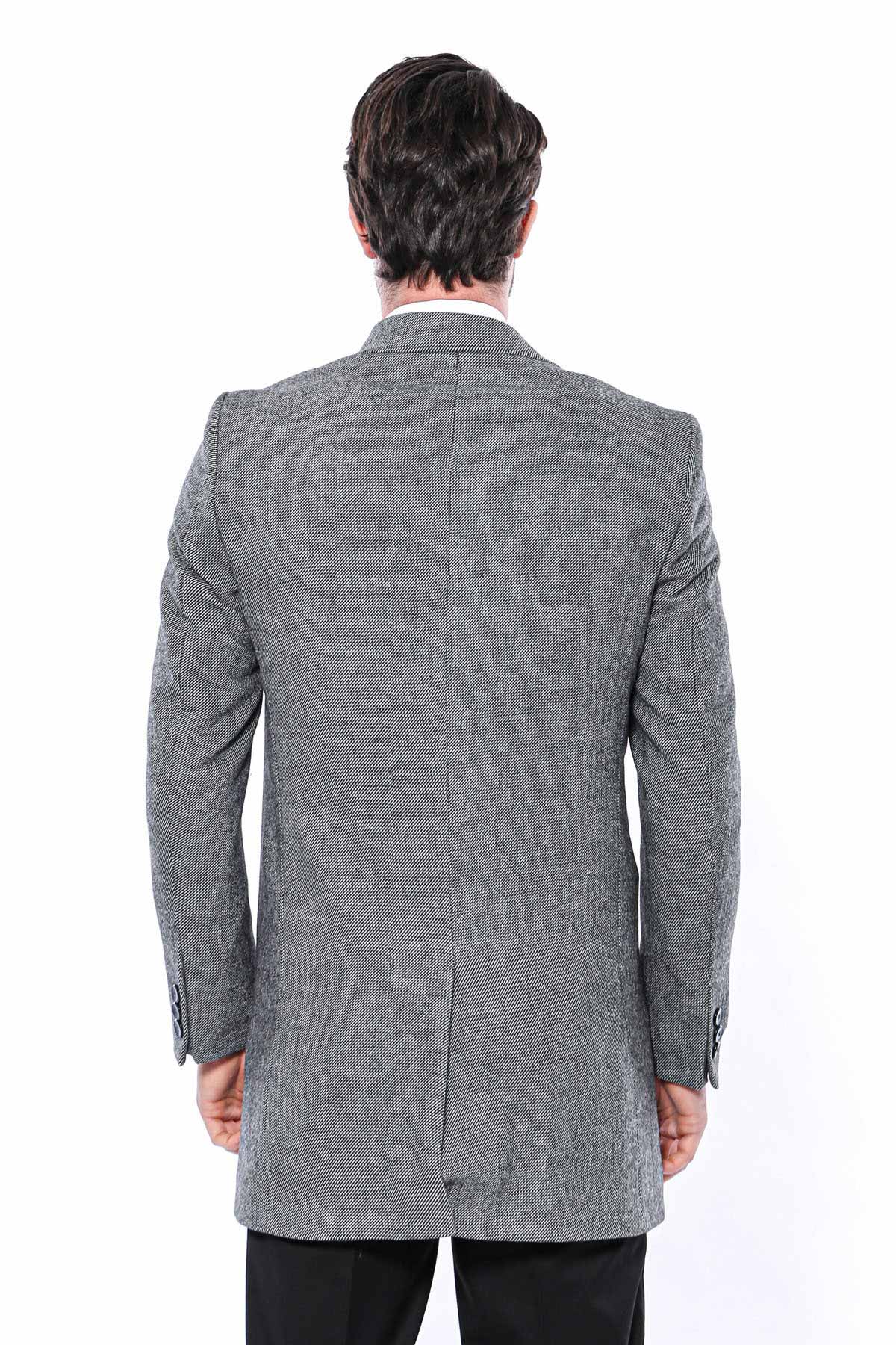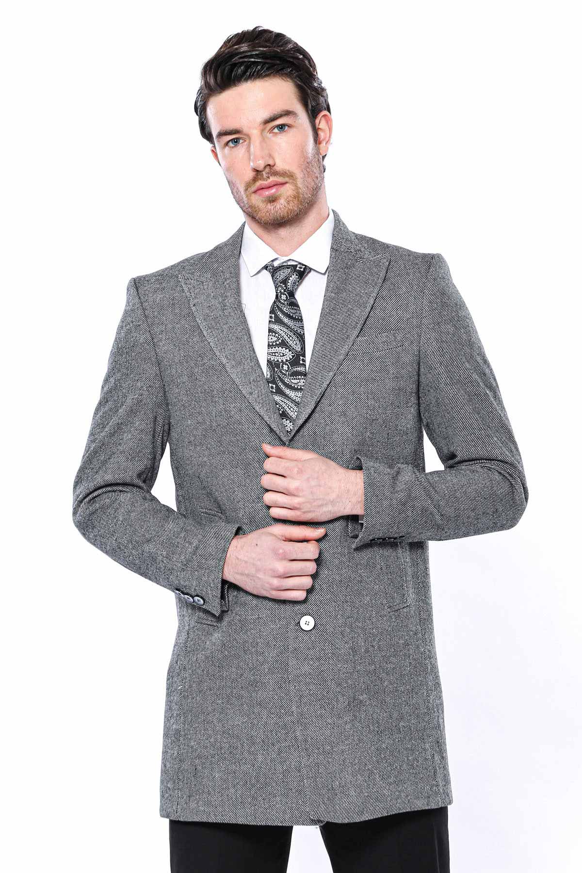 Los abrigos para hombre no solo te mantienen abrigado en climas fríos, sino que también te permiten presentar una apariencia llamativa. Los tejidos de alta calidad y los detalles de costuras respaldan la durabilidad y la estética de los abrigos. Símbolo de elegancia y calidez, este abrigo gris de cachemir para hombre llama la atención por su diseño auto estampado y su detalle de cuello ancho. Su cierre de tres botones combina elegancia y comodidad. Este abrigo es la elección perfecta para completar tu elegancia y calidez en los fríos días de invierno. Puedes combinar este abrigo de cachemira gris con una camisa azul y una corbata oscura para lograr un look clásico. Puedes completar el conjunto eligiendo unos pantalones marrones o grises debajo. Puedes enfatizar tu estilo usando zapatos de cuero negros o marrones. Considere agregar una bufanda gris o marrón, guantes y un gorro para protección adicional contra las condiciones climáticas frías. Este conjunto es adecuado para todo tipo de ocasiones elegantes, desde reuniones de negocios hasta eventos especiales, y enfatiza la elegancia clásica.
