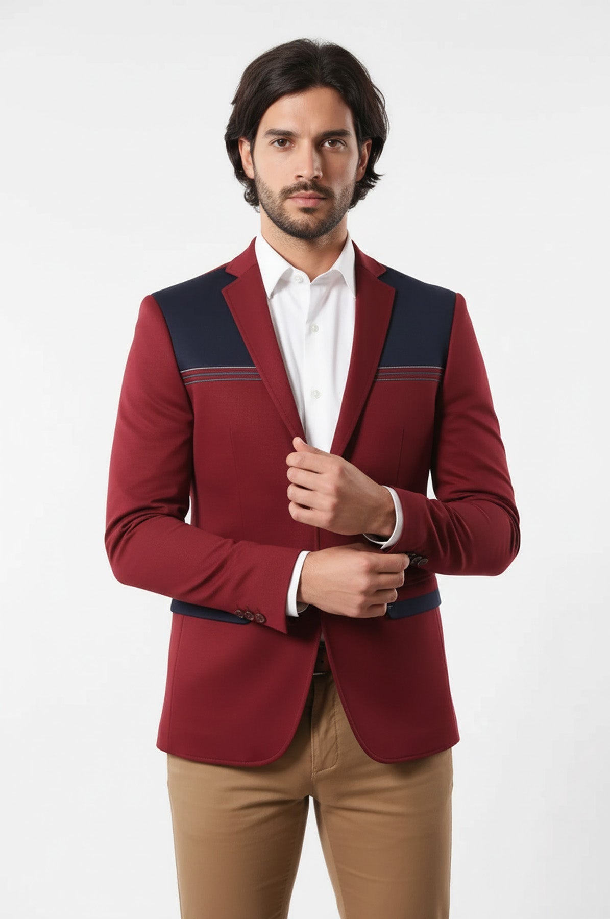 Chaqueta Hombre Cuello Bordado Peinado Burdeos - Wessi
