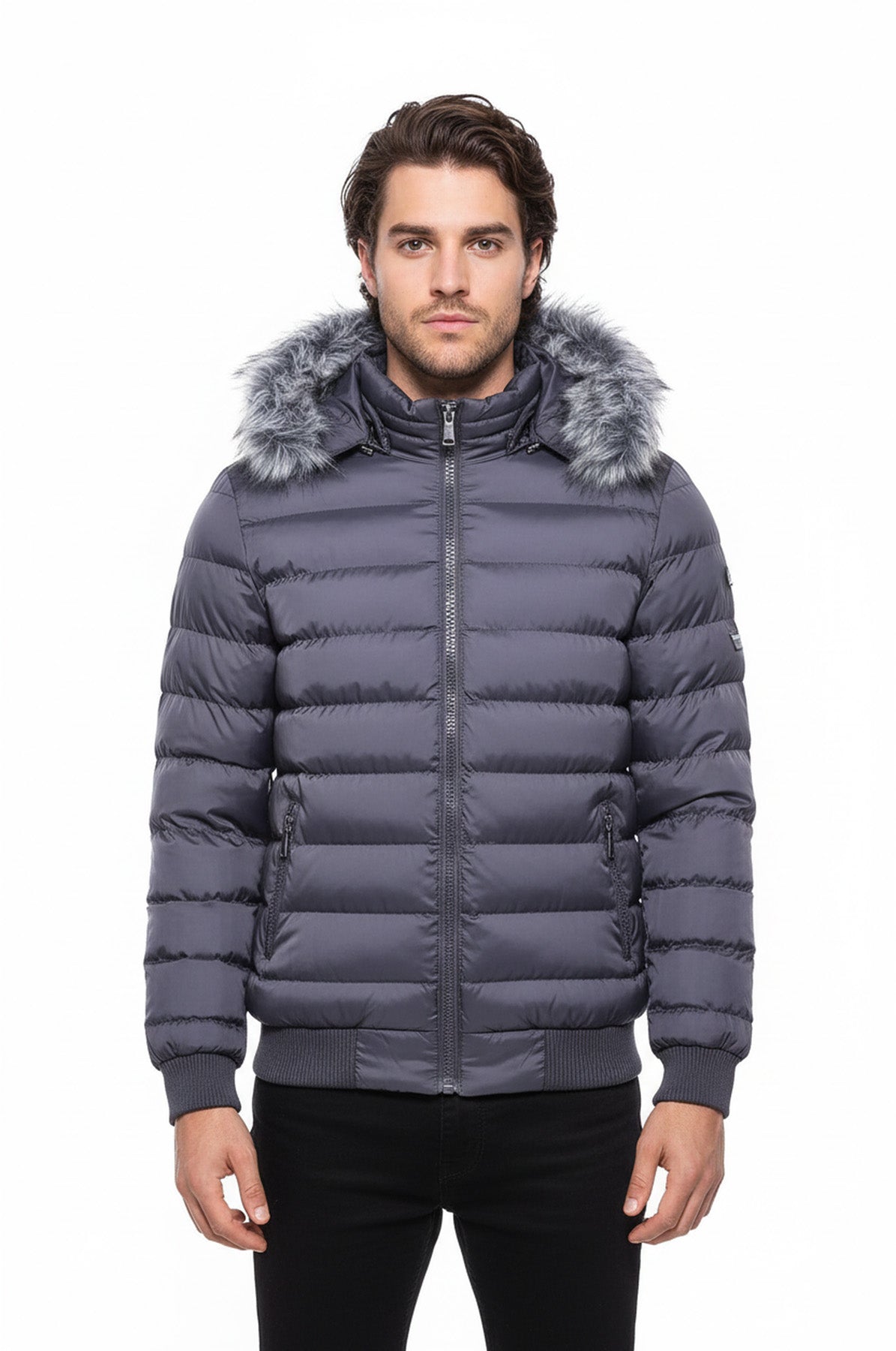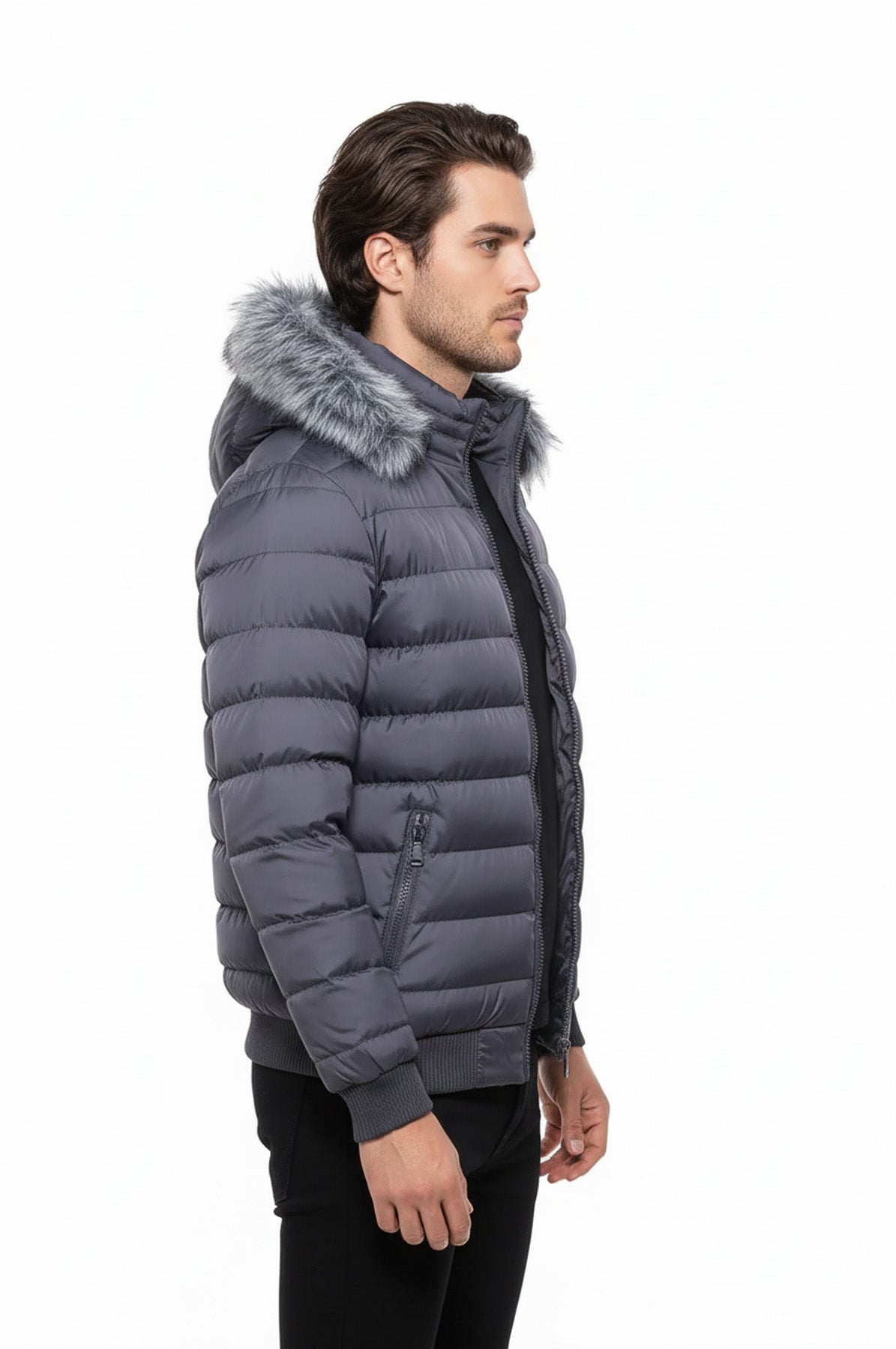 Abrigo acolchado gris con pelo para hombre - Wessi