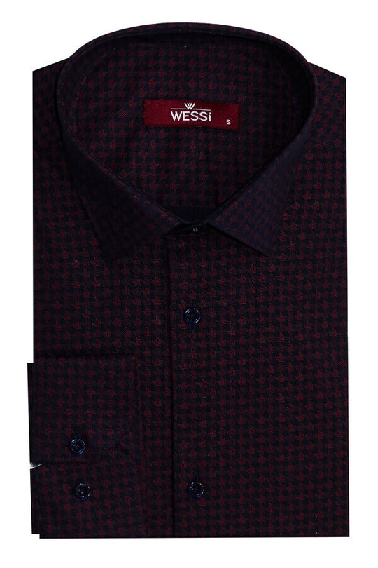 Camisa Hombre Patrón Pata De Gallo Slim Fit Burdeos - Wessi