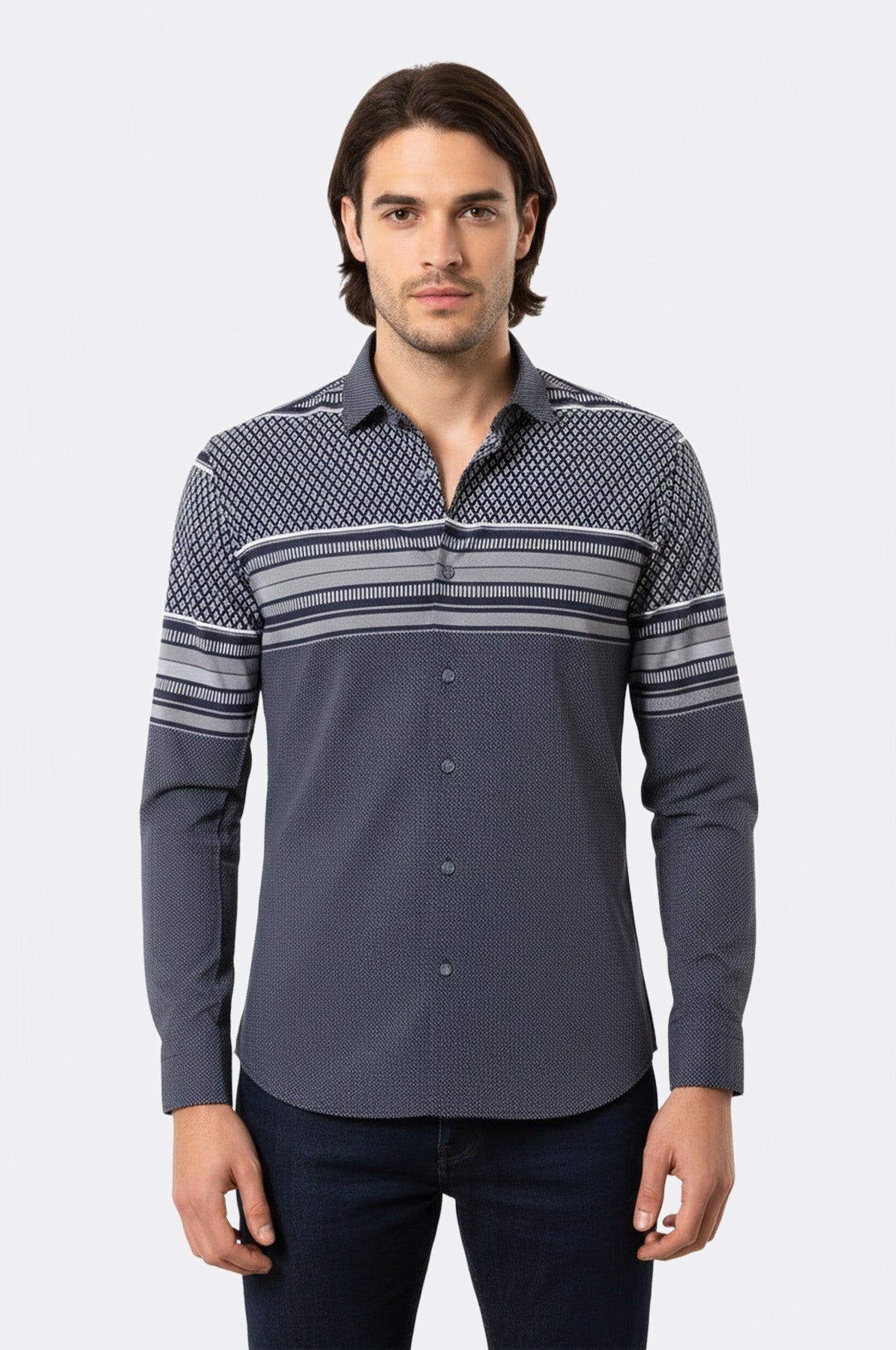 Camisa estampada azul marino para hombre - Wessi