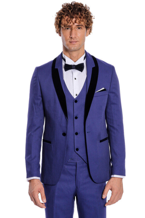 Esmoquin Hombre Terciopelo Estampado Solapa Azul - Wessi