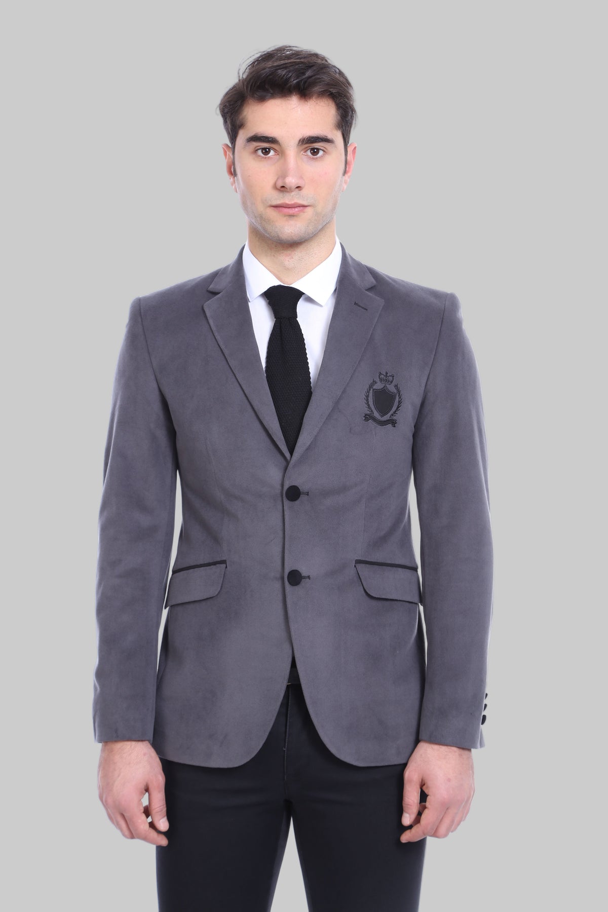 Chaqueta gris terciopelo con solapa y bolsillo-Wessi