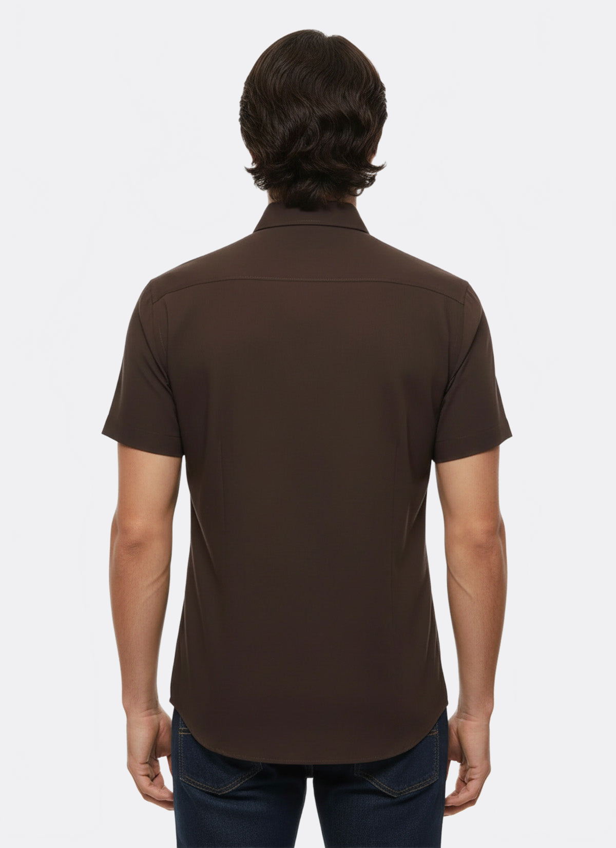 Camisa Hombre Manga Corta Algodón Marrón - Wessi