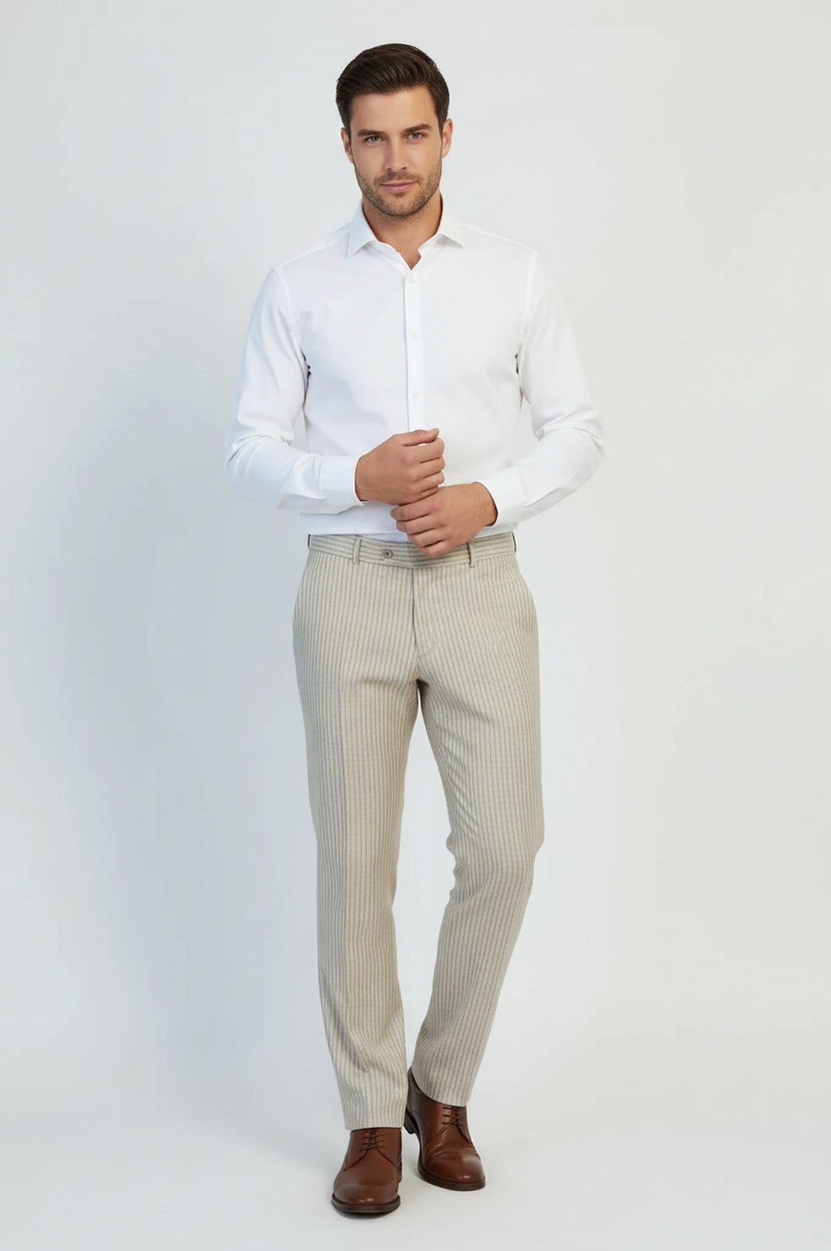 Why Choose Wessi Beige Fine Striped Fabric Trousers?