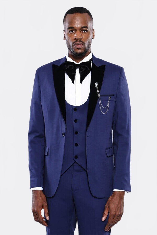 Les mariages modernes d’aujourd’hui nécessitent un look élégant et contemporain. Les hommes qui veulent suivre les tendances devraient envisager d’abandonner le smoking traditionnel et d’opter pour quelque chose qui les distinguera du reste de la foule. Pour une version moderne des tenues de soirée, optez pour un smoking homme coupe slim à revers en velours bleu. Non seulement ce style est parfait pour créer un look accrocheur, mais il vous permet également de mettre en valeur votre sens personnel du style. Lorsque vous portez ce type de costume, veillez à choisir des couleurs contrastées pour votre chemise, votre cravate et votre pochette de costume – pensez aux chemises blanches avec des nœuds papillon bleu marine et des pochettes de costume gris clair. Terminez votre look avec des chaussures habillées en cuir noir ou marron et une montre en or rose ou en acier inoxydable. Avec ces conseils de style, vous serez prêt à faire tourner les têtes lors de n’importe quel mariage moderne !