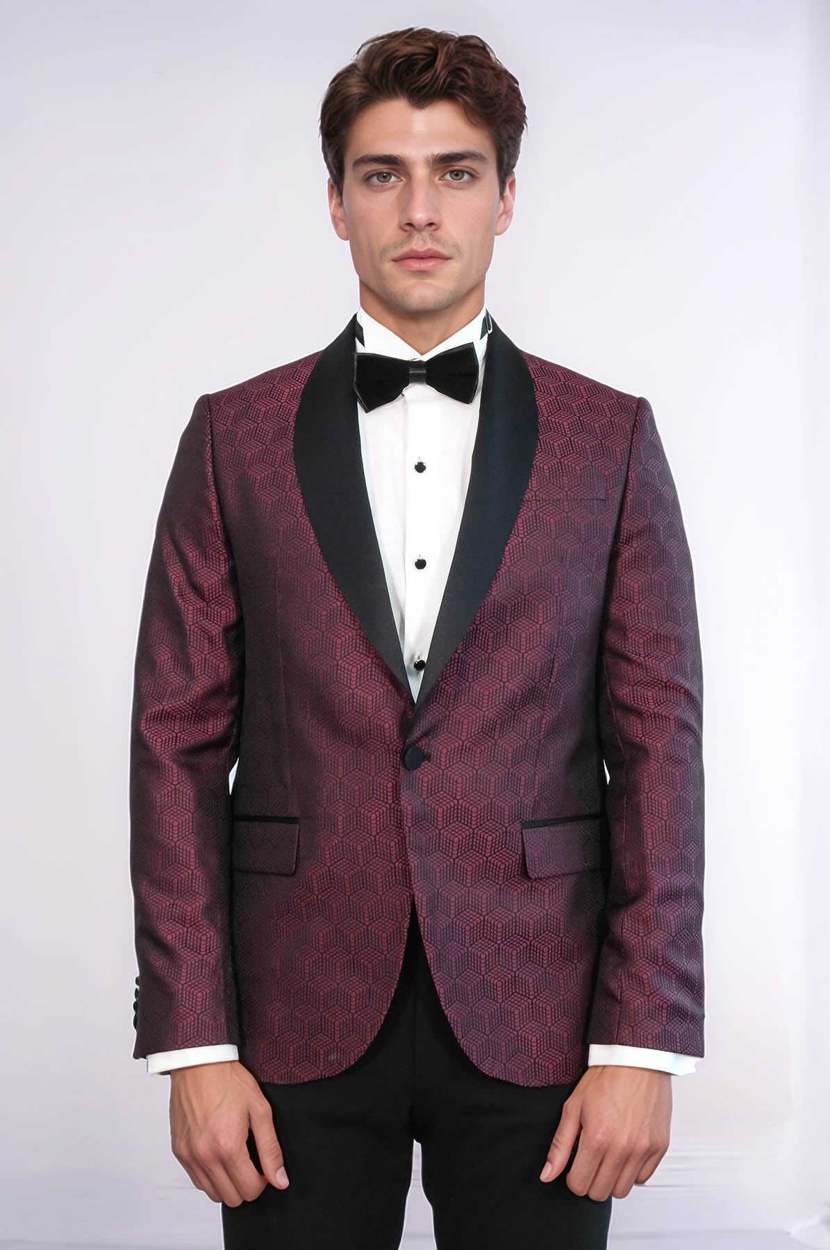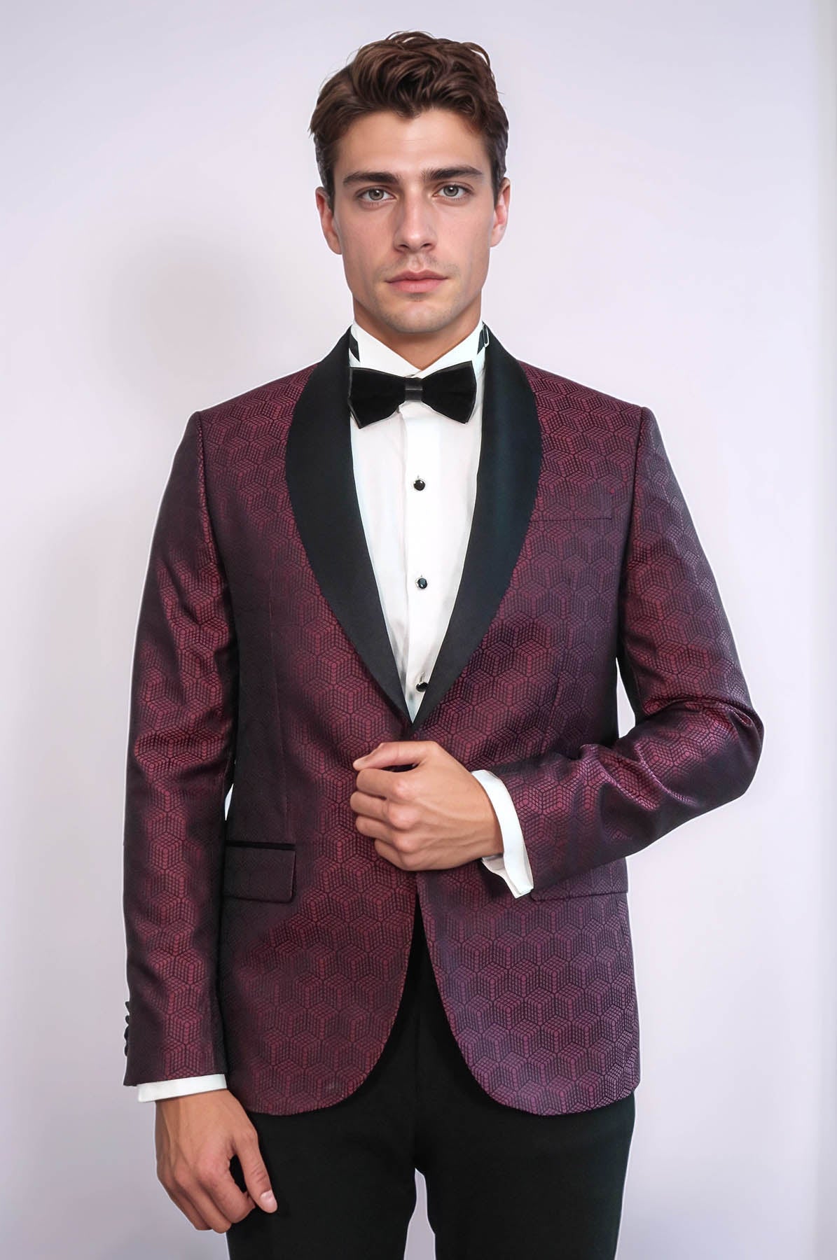 Pentagone à motifs châle revers bordeaux hommes blazer de bal - Wessi