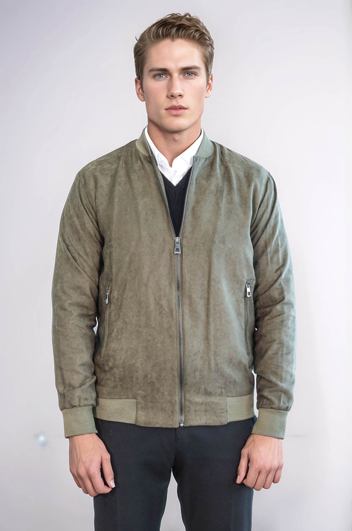 Manteau Bomber Homme Vert Clair Poches Zippées Unies - Wessi