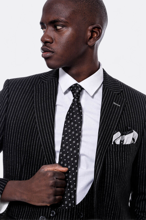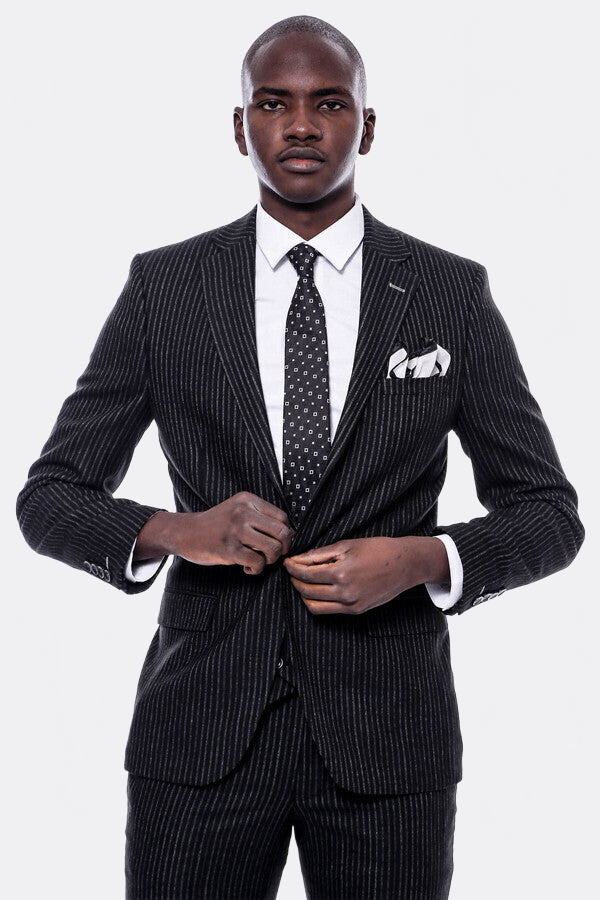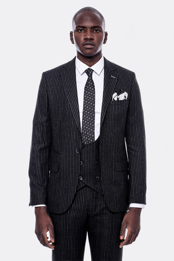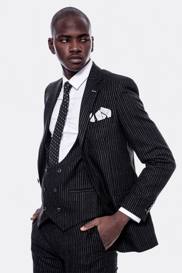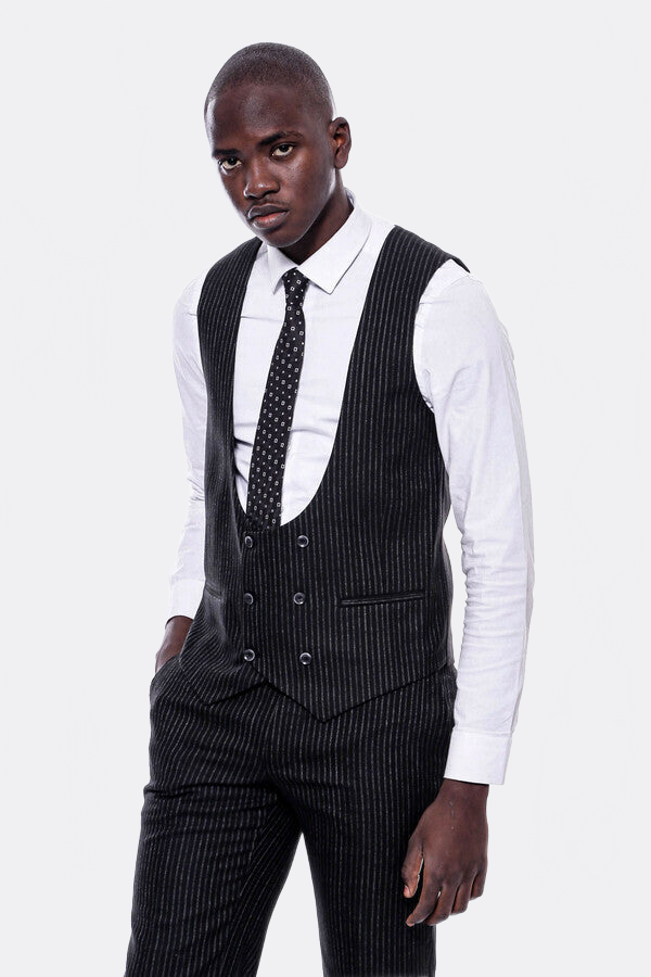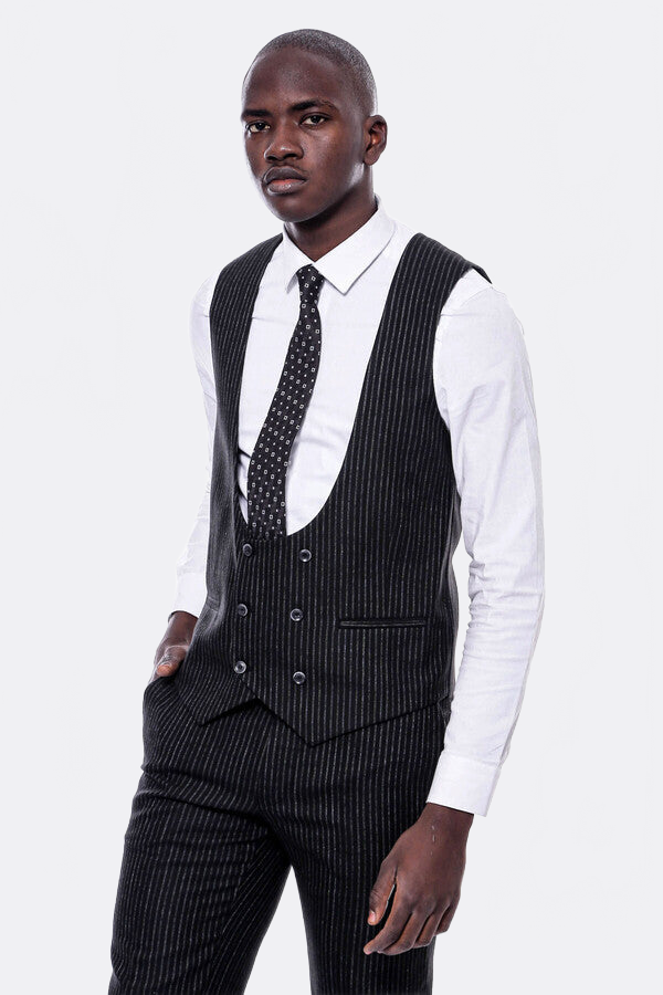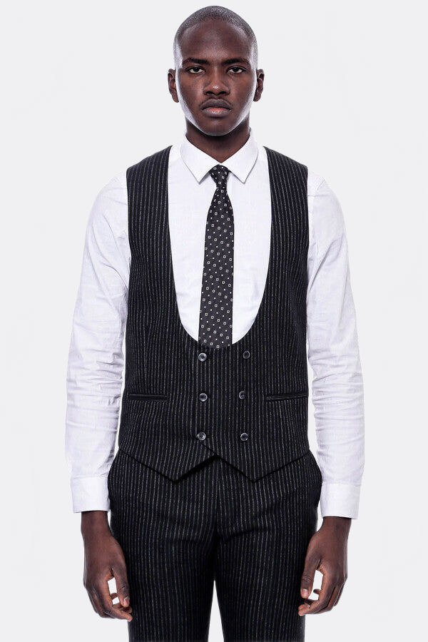 Détails :  Bouton unique, revers en pointe, gilet croisé