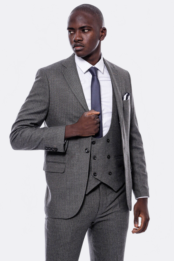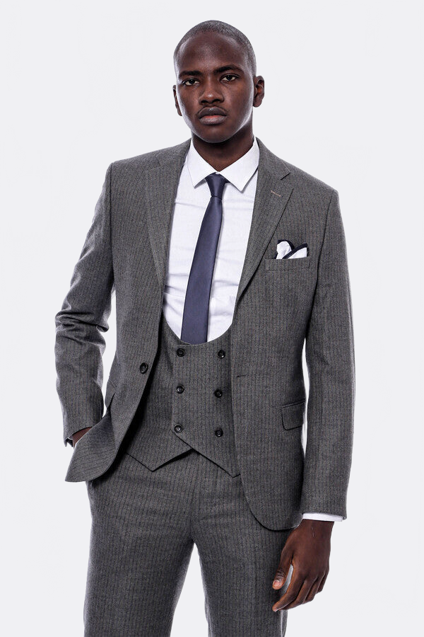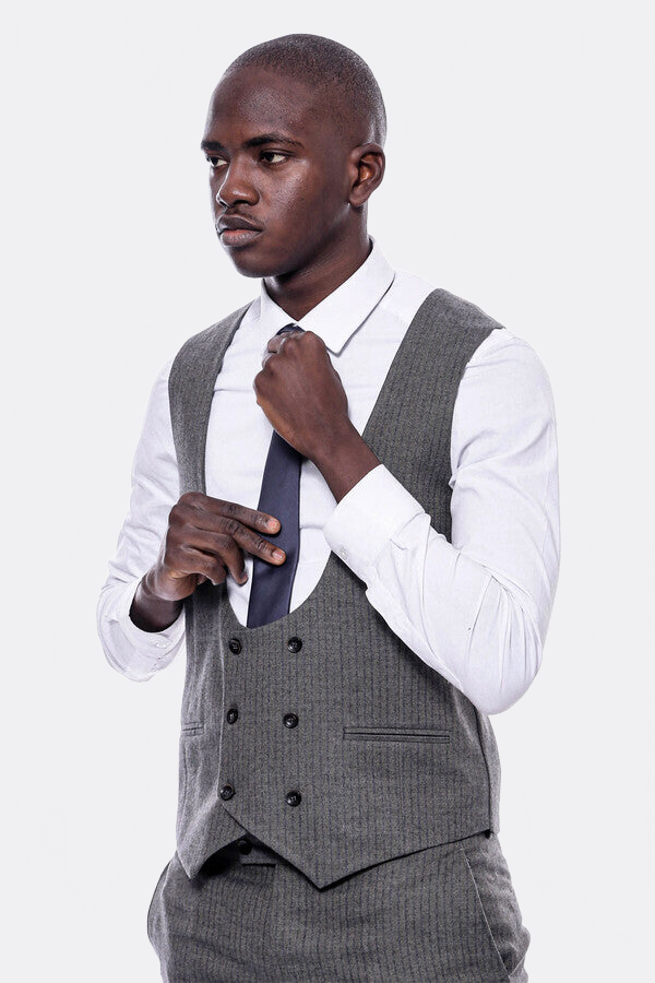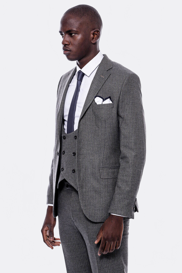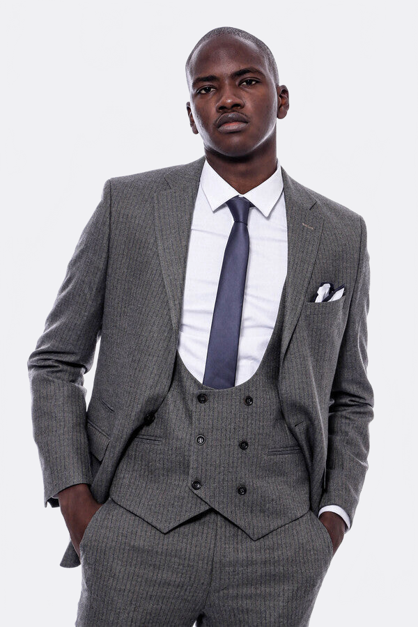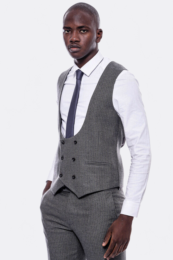 Détails :  Bouton unique, revers en pointe, gilet croisé