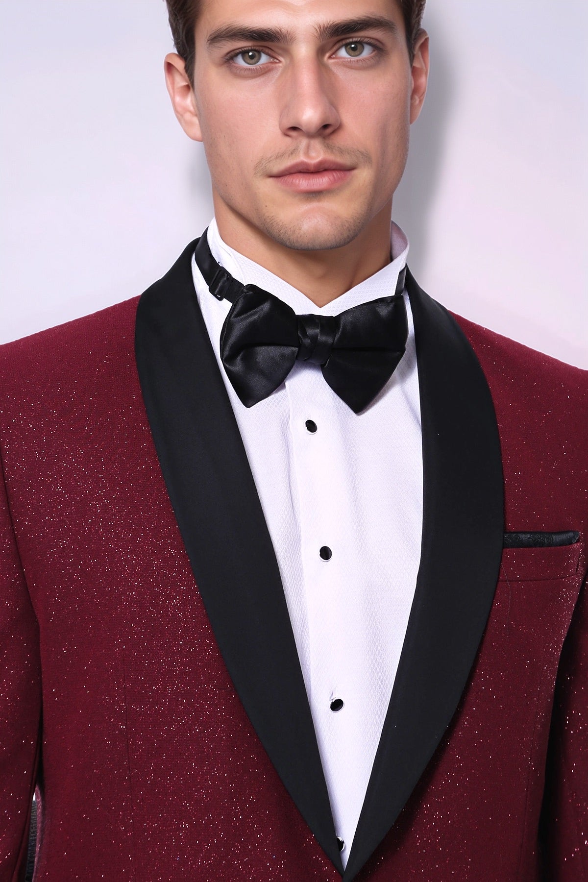 Giacca da smoking da uomo scintillante con risvolto sciallato bordeaux - Wessi