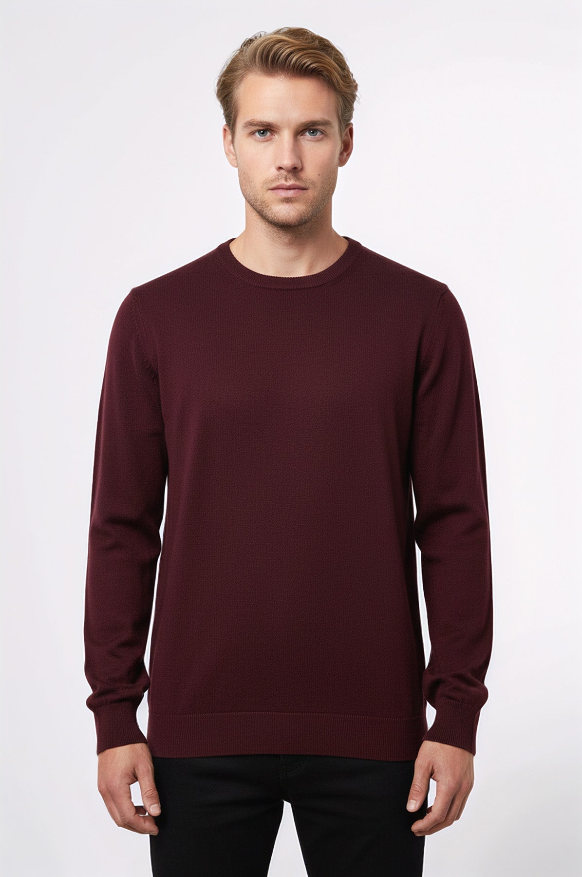 Maglione da uomo bordeaux a maniche lunghe girocollo tinta unita - Wessi