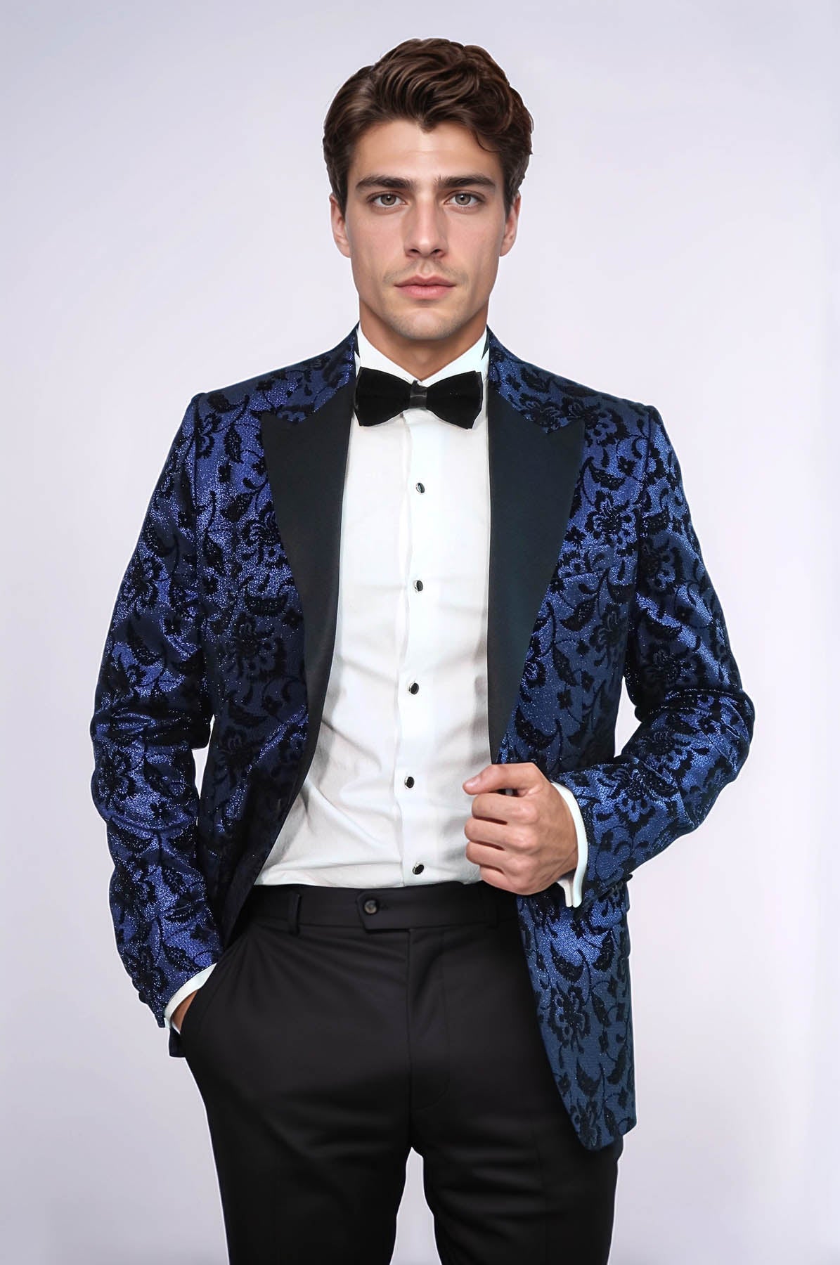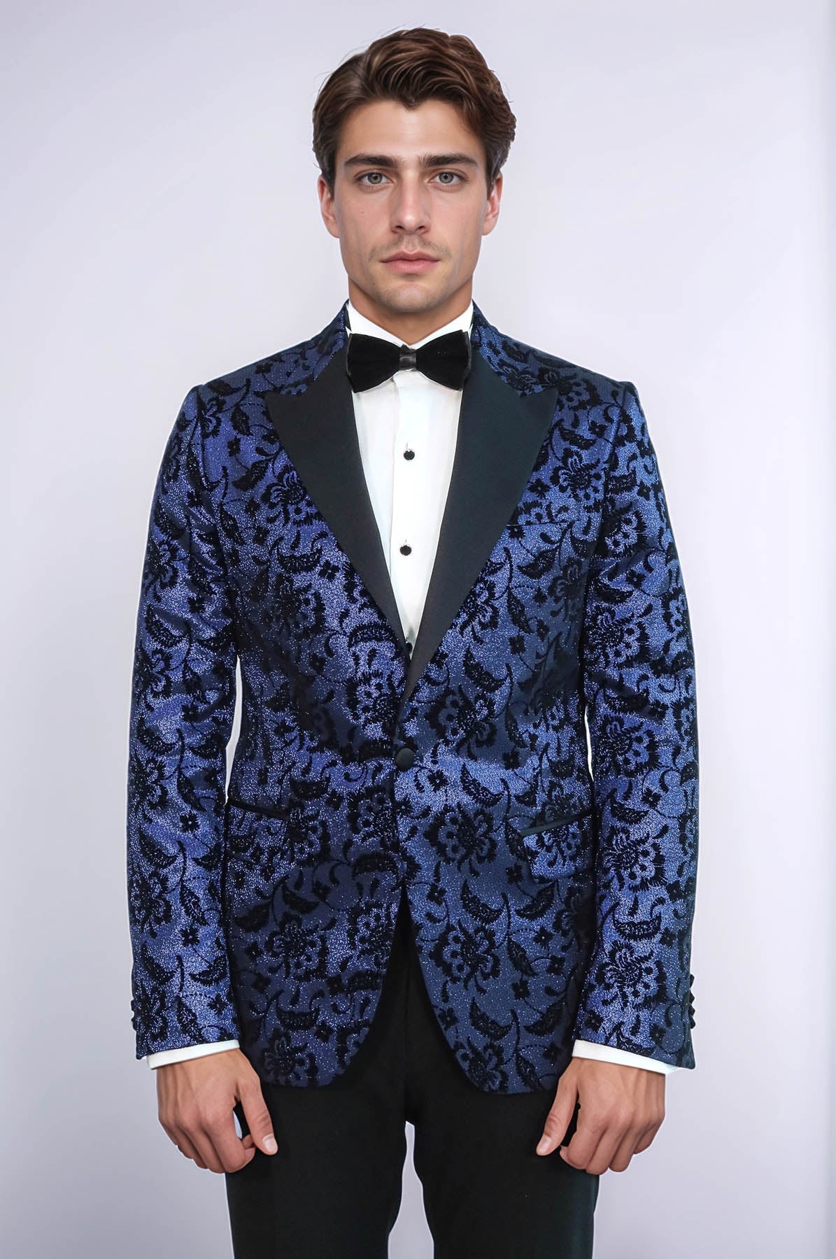 Blazer da ballo da uomo blu navy con risvolto a punta con motivo floreale - Wessi