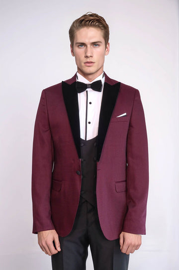 Blazer fantasia Gilet e pantaloni tinta unita Smoking rosso bordeaux - Wessi
