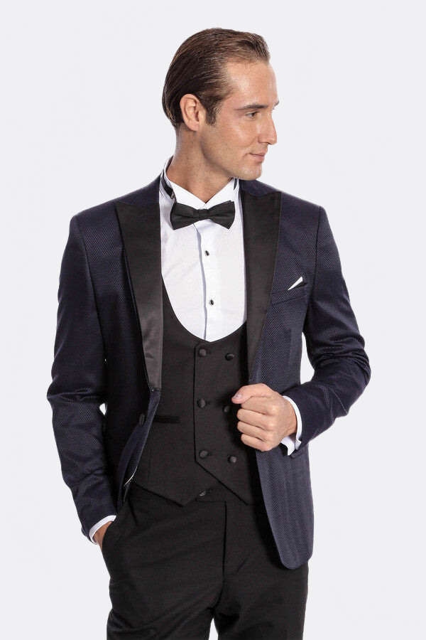 Smoking da uomo blu navy combinato con motivi - Wessi