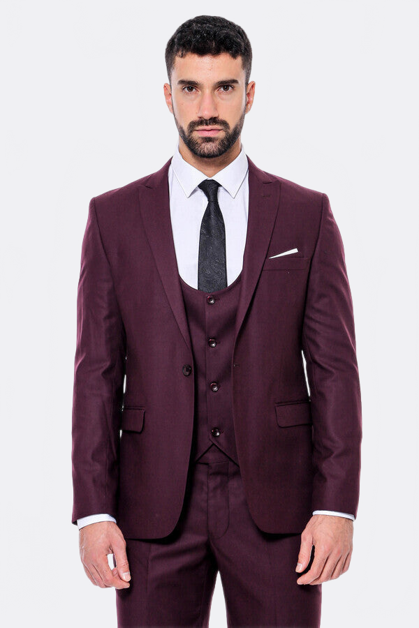Abito da uomo bordeaux tinta unita slim fit - Wessi