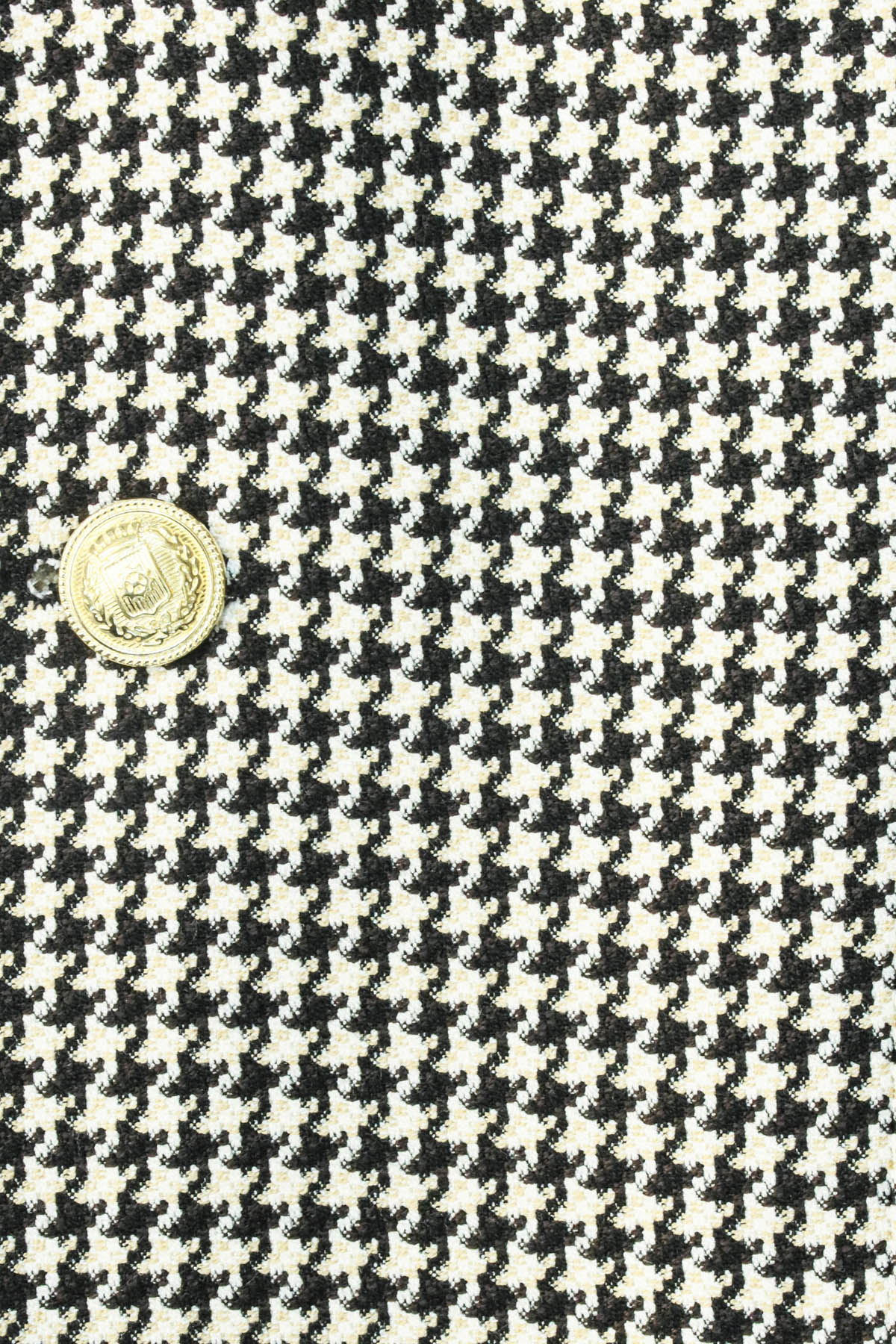 Black & Cream Houndstooth Pattern Gold Metal Button Slim Fit Men's Blazer Jacket - Wessi